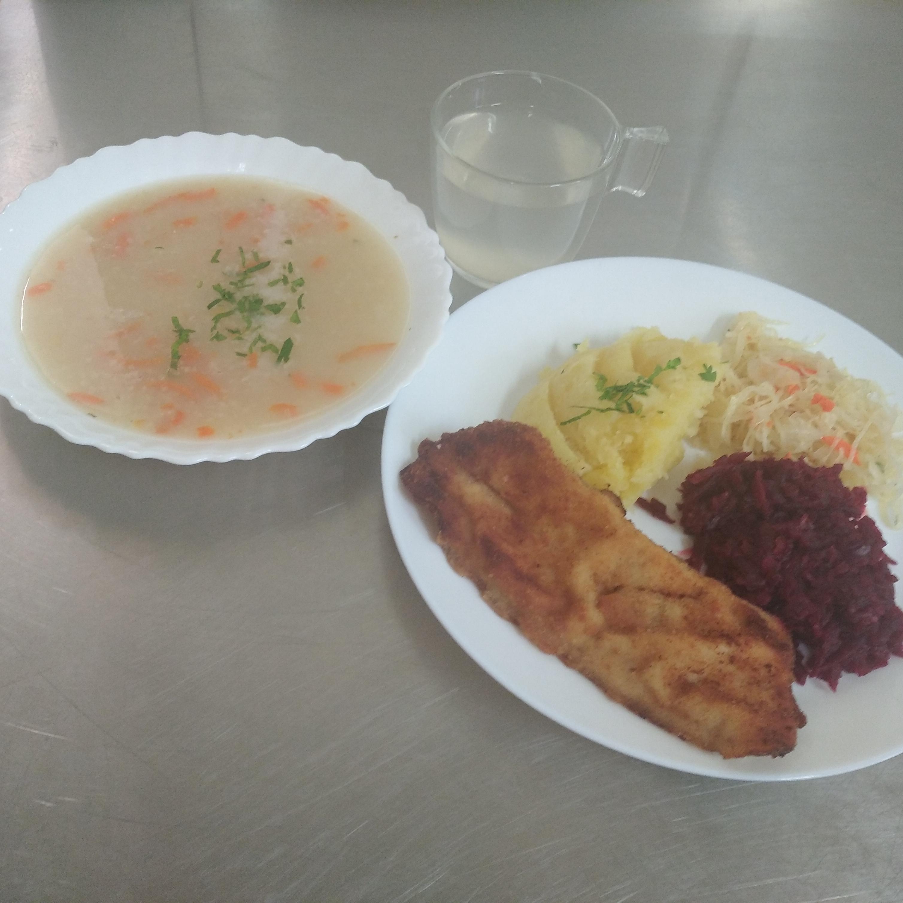 | obiad | krupnik 400ml(GLU,SOJ,GOR), ryba smażona 150g(RYB,JAJ,GLU), gotowane ziemniaki 200g, surówka z kapusty kiszonej 100g, buraczki 80g kompot 200ml | krupnik 400ml(GLU,SEL,MLE) ryba w jarzynach 110g(RYB,SEL), gotowane ziemniaki 200g, buraczki 120g kompot 200ml | krupnik 400ml(GLU,SEL,MLE) ryba w jarzynach 110g(RYB,SEL), gotowane ziemniaki 200g, buraczki 120g kompot 200ml | krupnik 350 ml(MLE,GLU,SEL), ryba w jarzynach 110g(RYB) gotowane ziemniaki 200g, buraki 80g, surówka z kapusty kiszonej 100g woda 200ml, | ||||