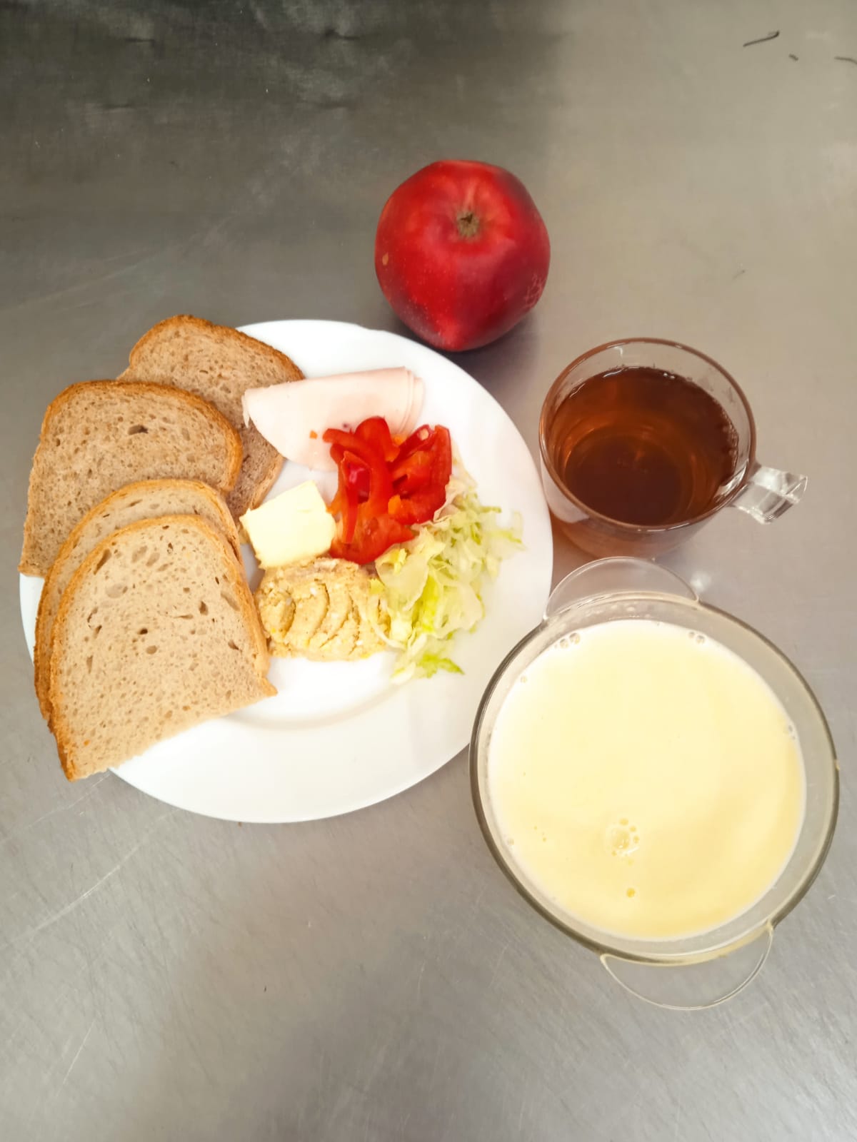 | 22.02.2024 | śniadanie | zupa mleczna z kaszą kukurydzianą 300ml, chleb graham 150,g masło 20g, kawa biała 200ml, polędwica drobiowa 30g pasta jajeczna 25g, sałata, papryka 30g, owoc | zupa mleczna z kaszą kukurydzianą 300ml, chleb/ bułka150g, masło 20g, kawa biała 200ml, polędwica drobiowa 60g, sałata, jabłko niskosodowa - pasta mięsna 50g sałata, jabłko | chleb graham 100g, masło 10g, kawa biała b/c 200ml, gotowane jajko 25g, polędwica drobiowa 30g, sałata, papryka 30g jogurt naturalny 150ml, jabłko | |||