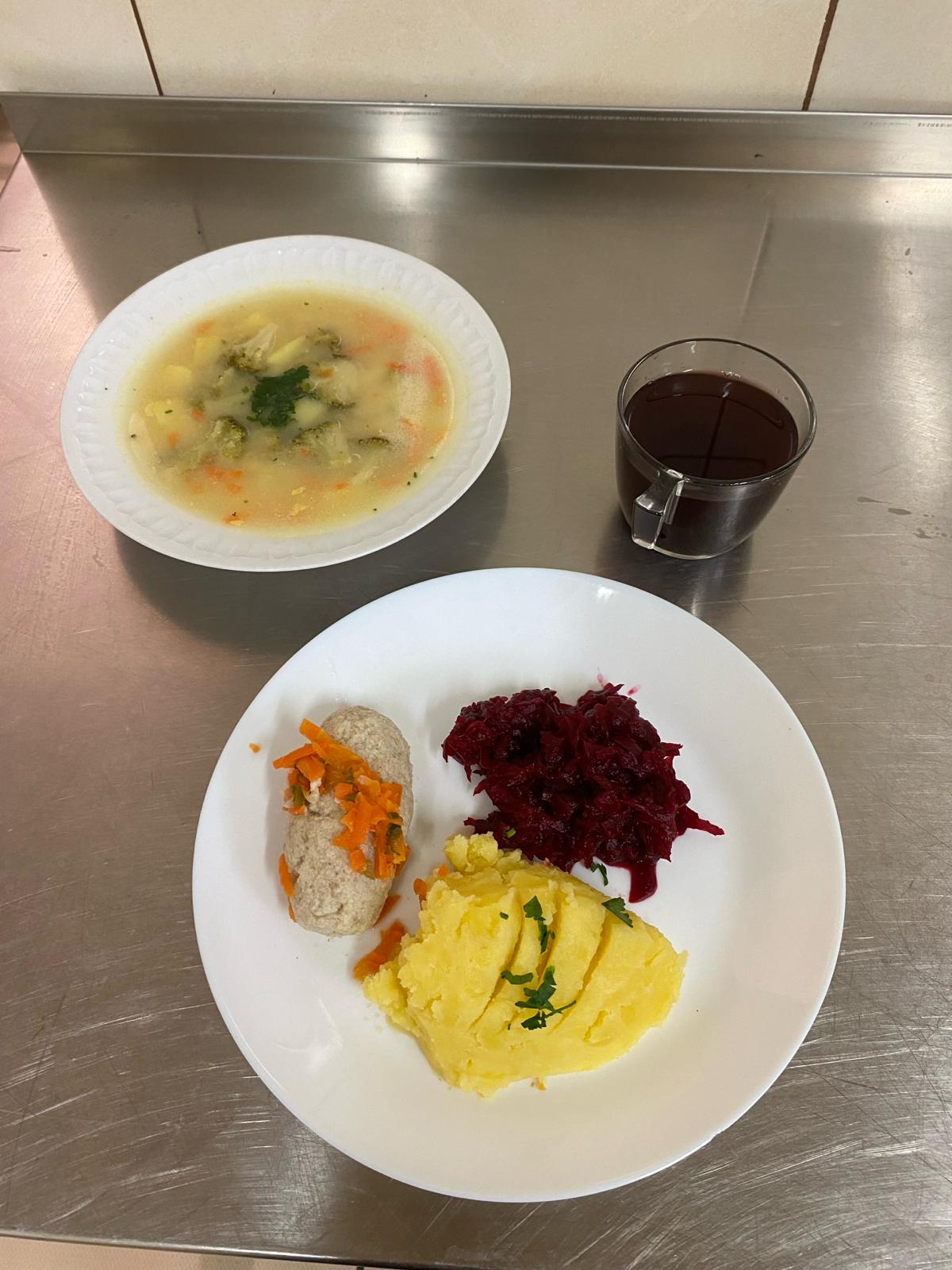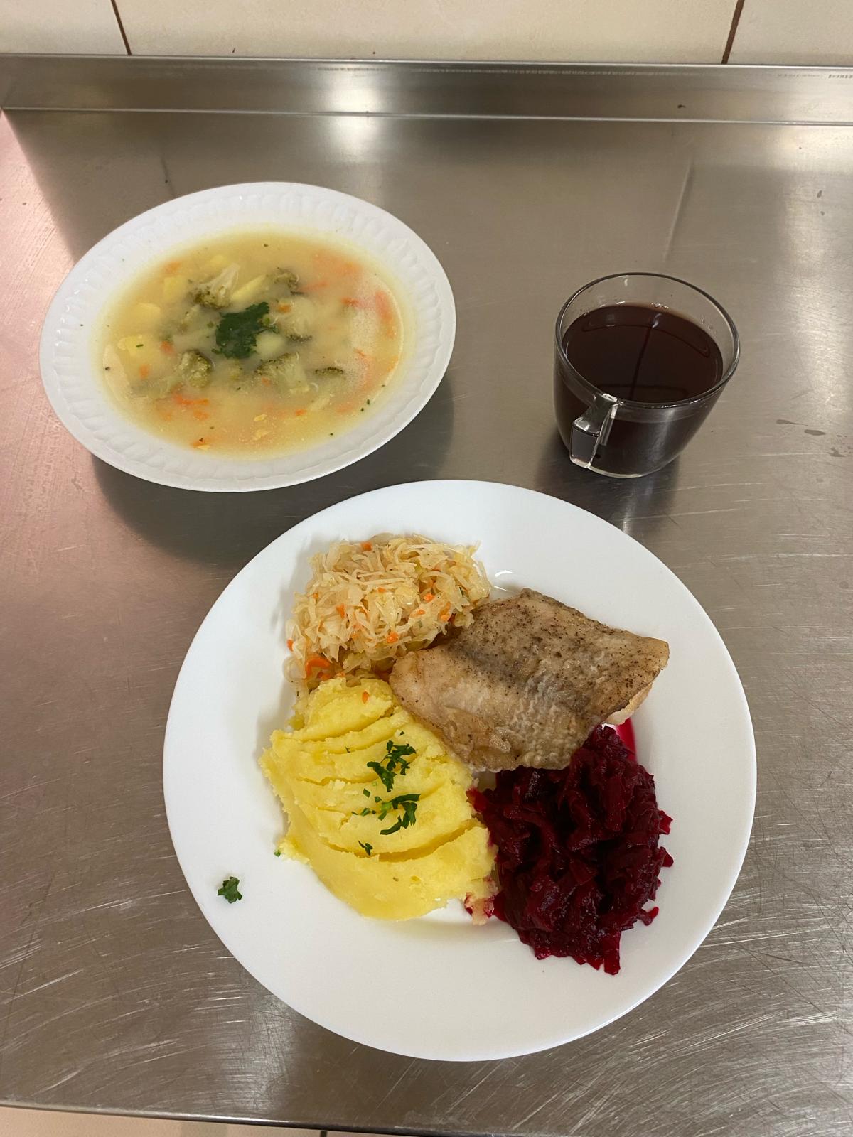 | obiad | zupa pieczarkowa 400ml, ryba soute 110g, gotowane ziemniaki 200g, surówka z kapusty kiszonej 800g, buraczki 80g kompot 200ml | zupa brokułowa 400ml klops rybny 110g gotowany w jarzynach 60g, gotowane ziemniaki 200g, buraczki 150g kompot 200ml | zupa pieczarkowa 350 ml, klops rybny 110g gotowany w jarzynach 60g, gotowane ziemniaki 200g, buraki 80g, surówka z kapusty kiszonej 800g woda 200ml, | ||||
