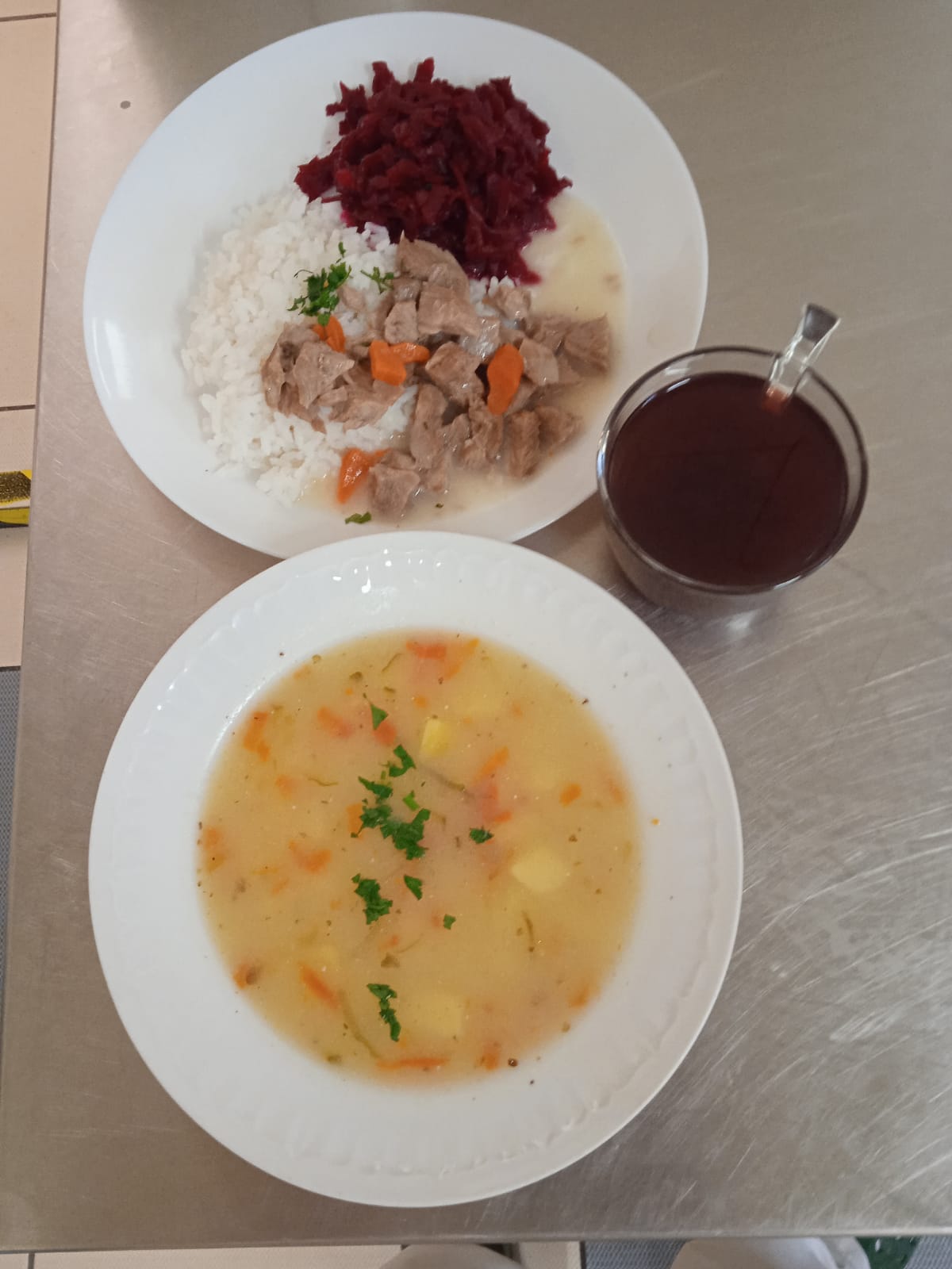 | obiad | rosół z makaronem 400ml, kurczak pieczony 150g, ziemniaki 200g, sałatka z kapusty czerwonej 150g, kompot 200mll | rosół z makaronem 400ml ,kurczak gotowany 150g, ziemniaki 200g, marchewka 150g, kompot 200ml | rosół z makaronem 350ml, kurczak gotowany 150g, ziemniaki 200g, sałatka z kapusty czerwonej 80g, surówka z marchewki 80g, woda 200ml | ||||