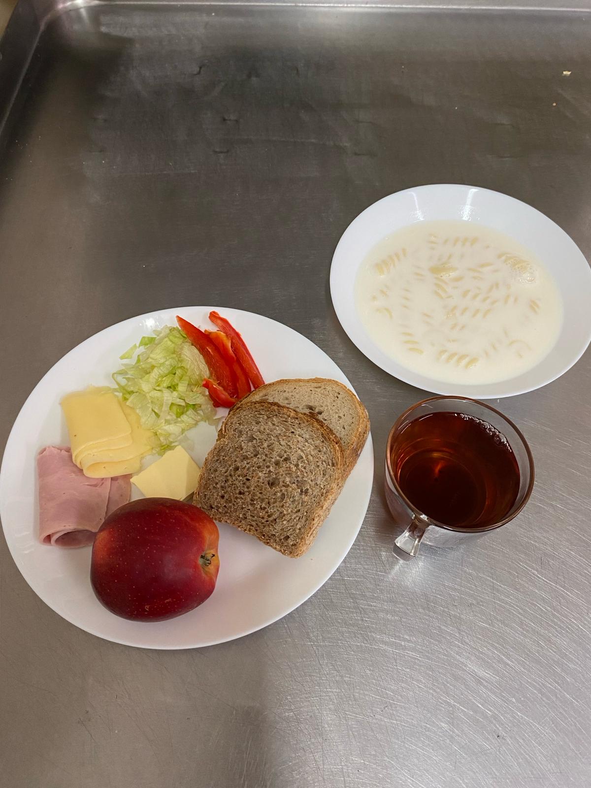 | 23.02.2024 | śniadanie | zupa mleczna z makaronem 300ml, chleb/graham 150g, masło 20g, kawa biała 200ml, szynkowa z indyka 30g, ser żółty 30g, ogórek zielony 30g sałata, jabłko | zupa mleczna z makaronem 300ml,chleb/bułka 150g, masło 20g, kawa biała 200ml, ser biały 50g, miód 25g, dżem 25g. Owoc | chleb graham 100g, masło 10g, kawa biała b/c 200ml, ser żółty 30g, blok szynkowy 30g, sałata, papryka 30g, jogurt naturalny 150ml, jabłko | |||