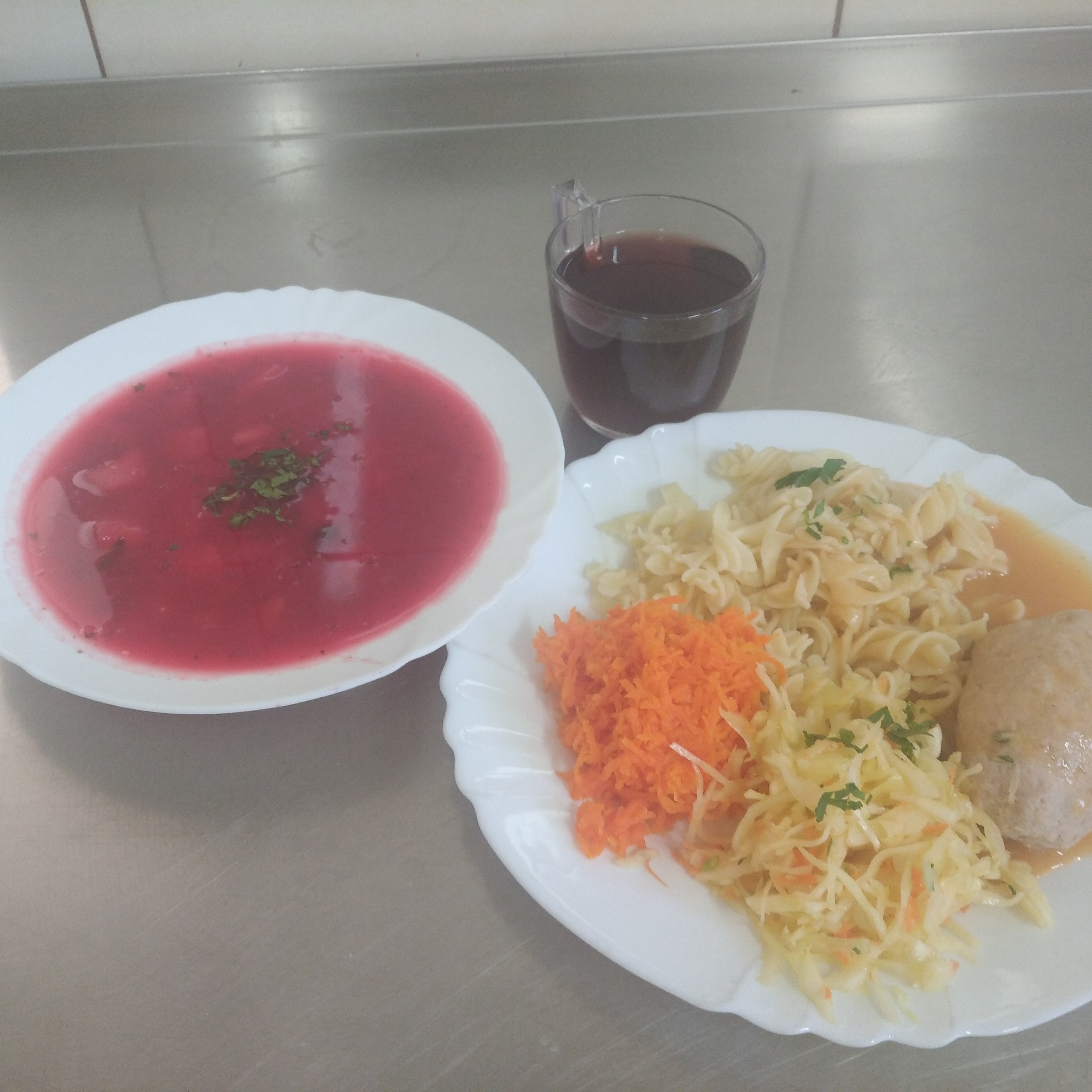 | obiad | Barszcz czerwony 400ml, gotowane pulpety w sosie pomidorowym 110/150g, z makaronem 200g surówka z białej kapusty120, kompot 200ml | Barszcz czerwony 400ml, gotowane pulpety w sosie pomidorowym 110/150g, z makaronem 200g marchewka120, kompot 200ml | Barszcz czerwony 400ml, gotowane pulpety w sosie pomidorowym 110/150g, z makaronem 200g marchewka120, kompot 200ml | Barszcz czerwony 400ml, gotowane pulpety w sosie pomidorowym 110/150g, surówka z kapusty białej 100g, marchewka 80g, woda 200ml | ||||||