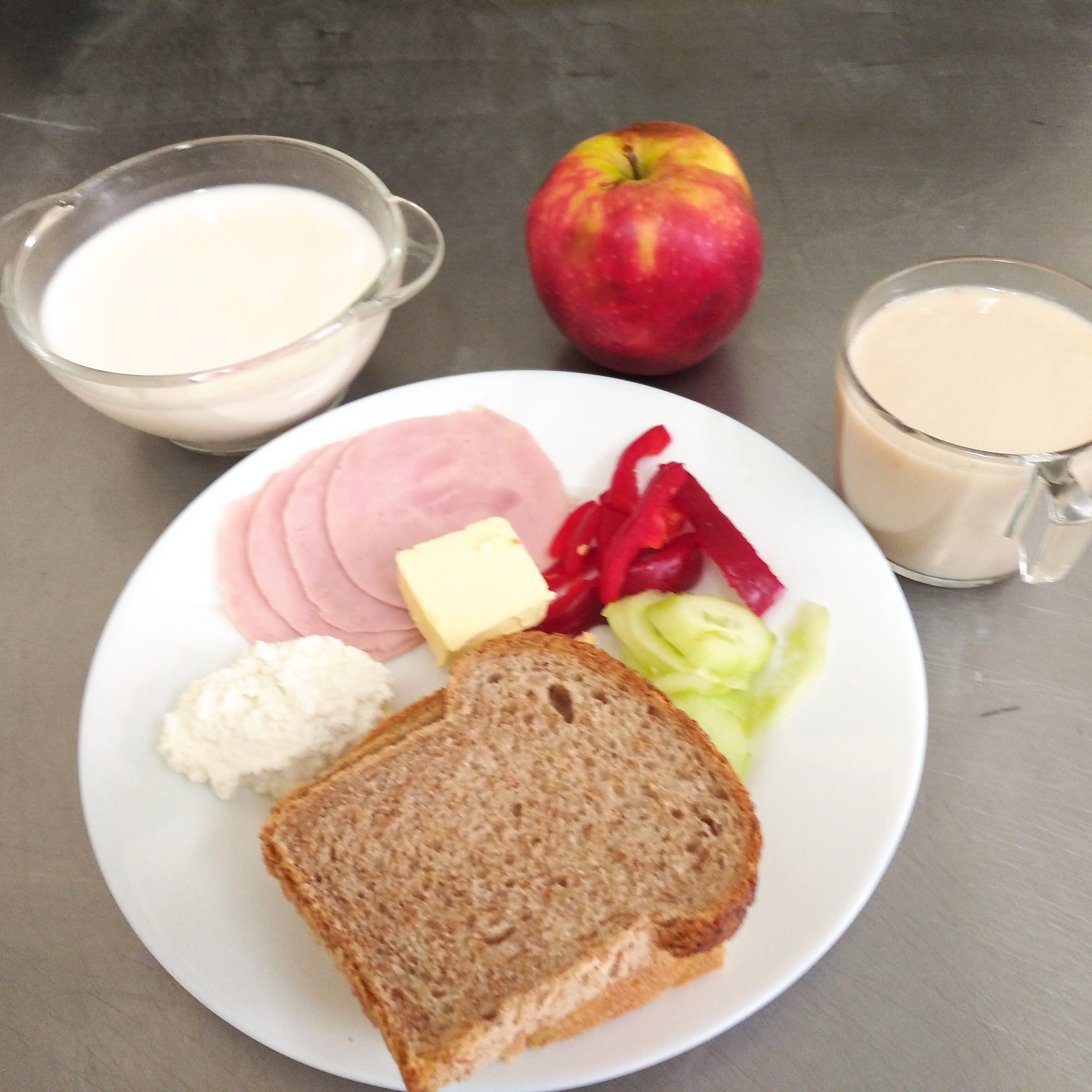 | kolacja | chleb 100g, masło 20g, serek topiony 25g polędwica drobiowa 30g, sałata, papryka 30g herbata 200ml | chleb 100g, masło 20g, polędwica z indyka 60g, sałata,pomidor bez skórki 30g herbata 200ml | chleb 100g, masło 20g, sałata,pomidor bez skórki 30g herbata 200ml, pasta jajeczna z pietruszką 50g, | pasta jajeczna z pietruszką 25g, polędwica z indyka 25g, sałata, chleb 150g, papryka 30g ,masło 10g, herbata b/c 200ml | ||||||