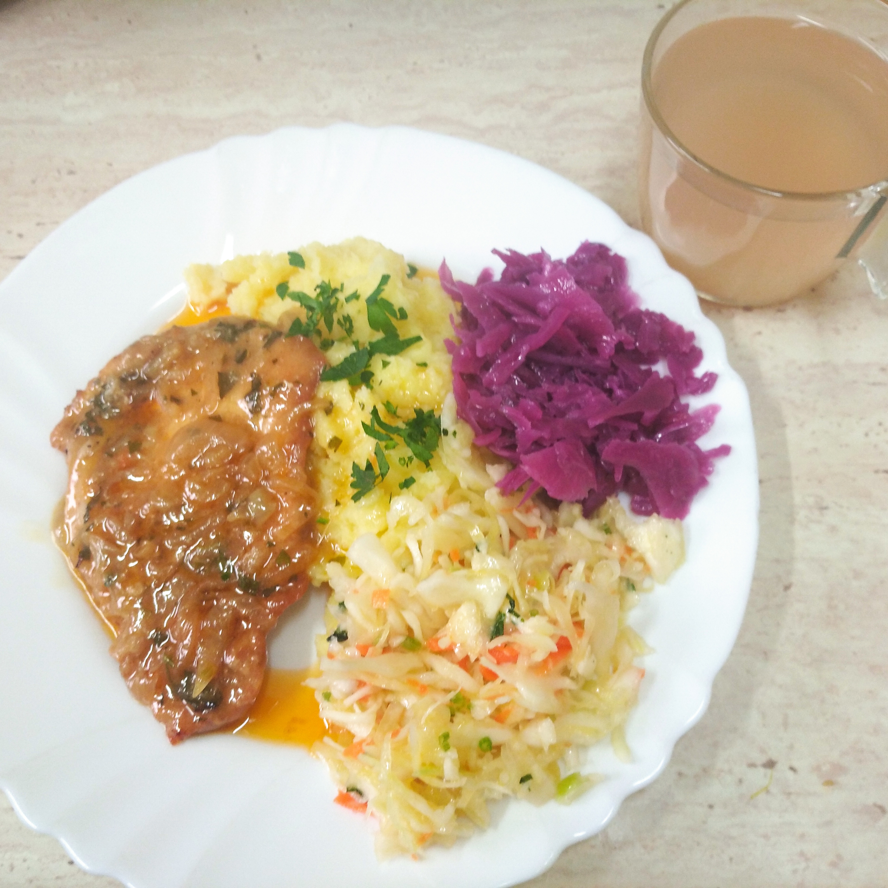 | obiad | zupa makaronowa 400ml, bitki wieprzowe ze schabu 150g, ziemniaki 200g, surówka z kap białej 80g, sałatka z kapusty czerwonej 80g, kompot 200ml | zupa makaronowa 400ml, schab gotowany w sosie własnym 110g, ziemniaki 200g, gotowana marchewka 150g, kompot 200ml | zupa makaronowa 350 ml, schab gotowany w sosie własnym 110g, ziemniaki 200g, surówka z kapusty białej 80g, surówka z marchewki 80g, woda 200ml, jogurt naturalny 150ml | ||||