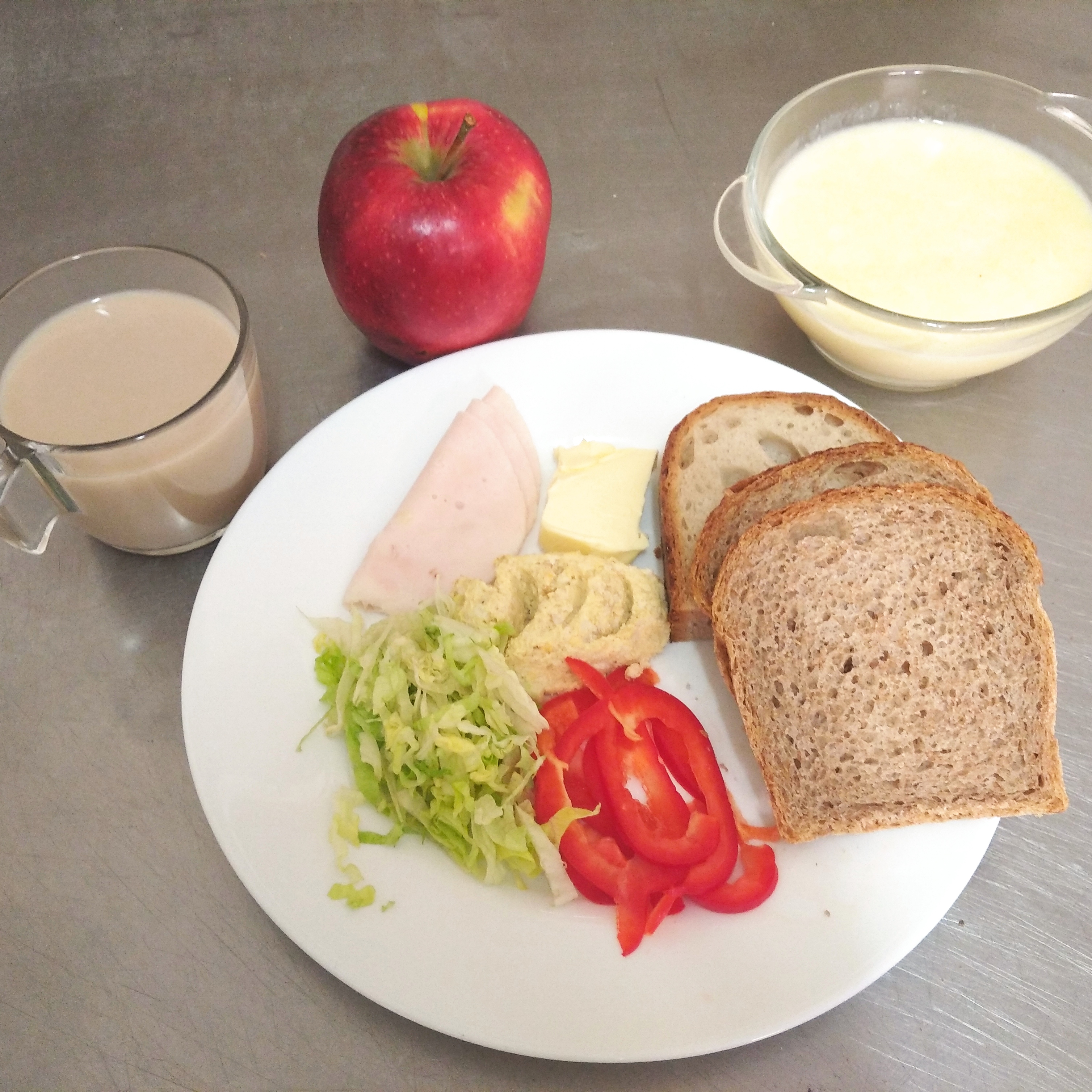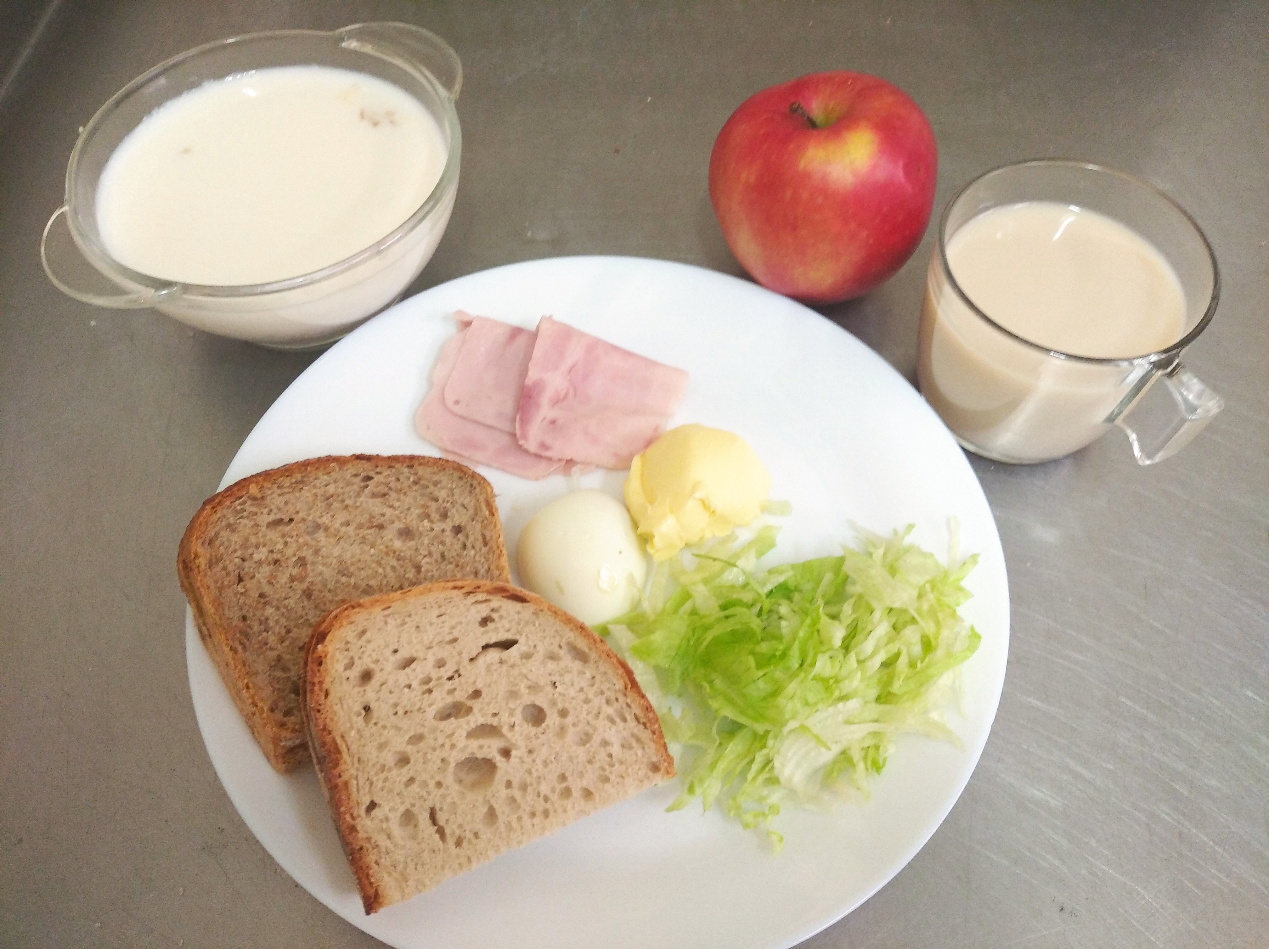 | 29.12.2023 | śniadanie | zupa mleczna z kaszą kukurydzianą 300ml, chleb graham 150,g masło 20g, kawa biała 200ml, polędwica drobiowa 30g pasta jajeczna 25g, sałata, papryka 30g, jabłko | zupa mleczna z kaszą kukurydzianą 300ml, chleb/ bułka150g, masło 20g, kawa biała 200ml, polędwica drobiowa 60g, sałata, jabłko niskosodowa - pasta mięsna 50g sałata, jabłko | chleb graham 100g, masło 10g, kawa biała b/c 200ml, gotowane jajko 25g, polędwica drobiowa 30g, sałata, papryka 30g jogurt naturalny 150ml, jabłko | |||