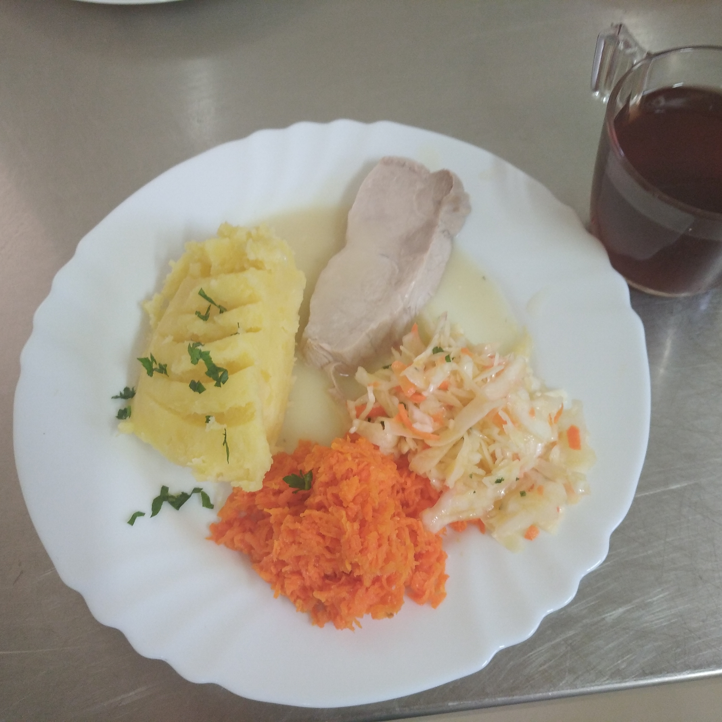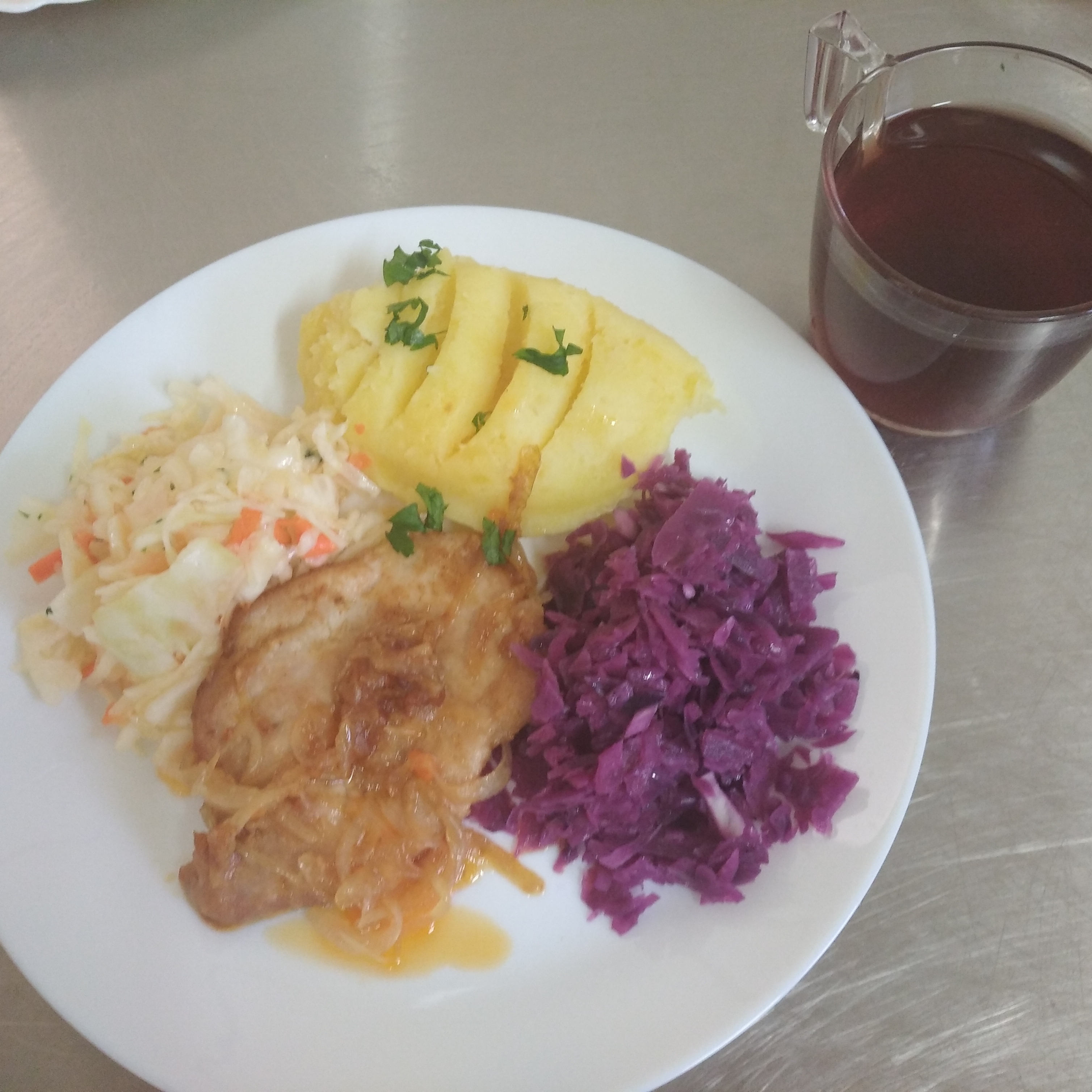 | obiad | zupa pomidorowa z makaronem nitki 400ml, bitki wieprzowe ze schabu 150g, ziemniaki 200g, surówka z kap białej 80g, sałatka z kapusty czerwonej 80g, kompot 200ml | zupa pomidorowa z makaronem nitki 400ml, schab gotowany w sosie własnym 110g, ziemniaki 200g, gotowana marchewka 150g, kompot 200ml | zupa pomidorowa z makaronem nitki 350 ml, schab gotowany w sosie własnym 110g, ziemniaki 200g, surówka z kapusty białej 80g, surówka z marchewki 80g, woda 200ml, jogurt naturalny 150ml | ||||