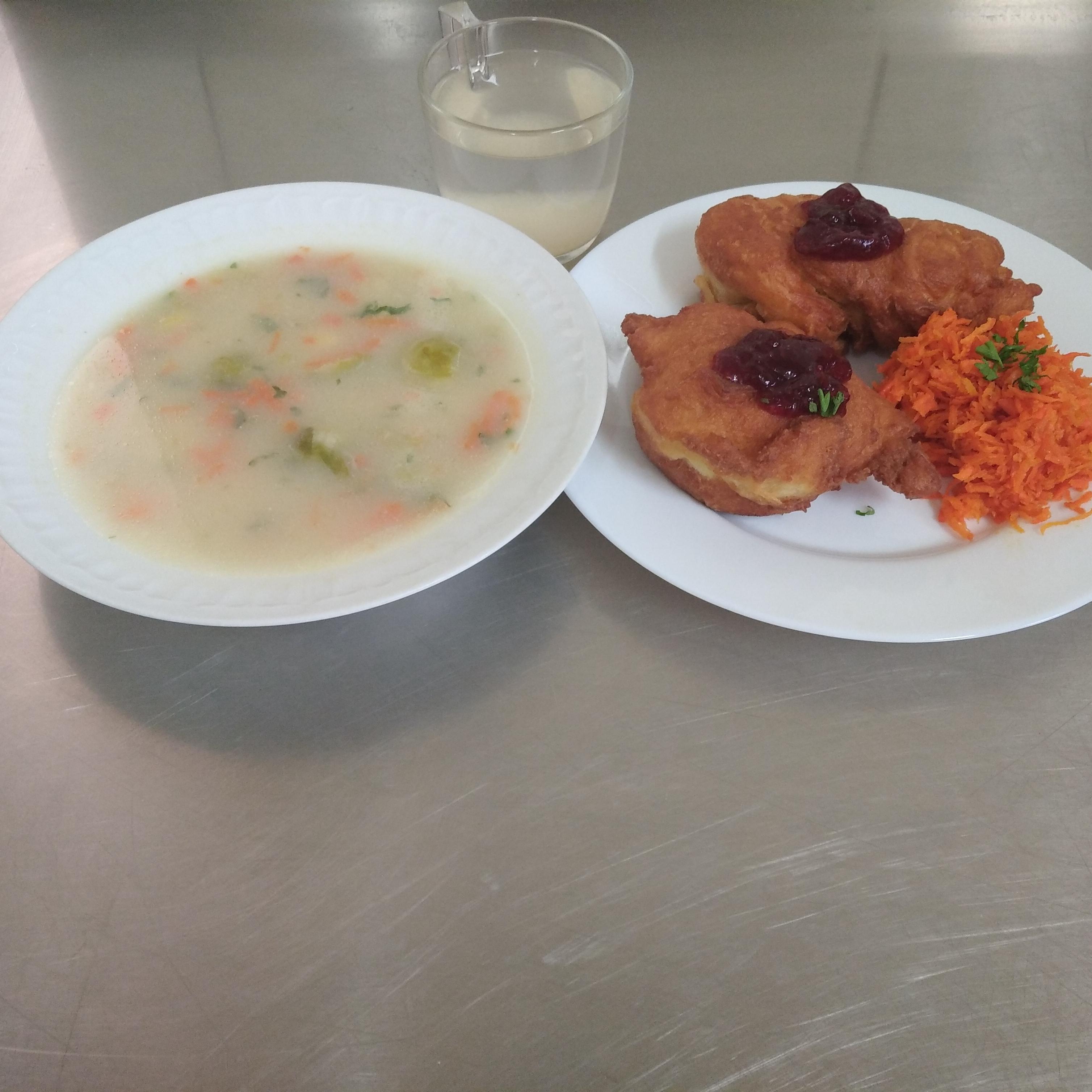 | obiad | zupa z brukselki 400ml(SEL,GLU,MLE), racuchy z jabłkiem 300g(GLU,MLE,JAJ) surówka z marchewki 120g, kompot 200ml | zupa kalafiorowa 400ml(SEL,GLU,MLE), kluski z mięsem 300g(GLU,MLE) marchewka 150g , kompot 200ml | zupa kalafiorowa 400ml(SEL,GLU,MLE), kluski z mięsem 300g(SEL) marchewka 150g, kompot 200ml | zupa z brukselki 350ml(SEL,MLE,GLU), indyk gotowany w potrawce 150g(GLU), ziemniaki 200g surówka z marchewka 80g surówka z kapust białej 80g woda 200ml | |||