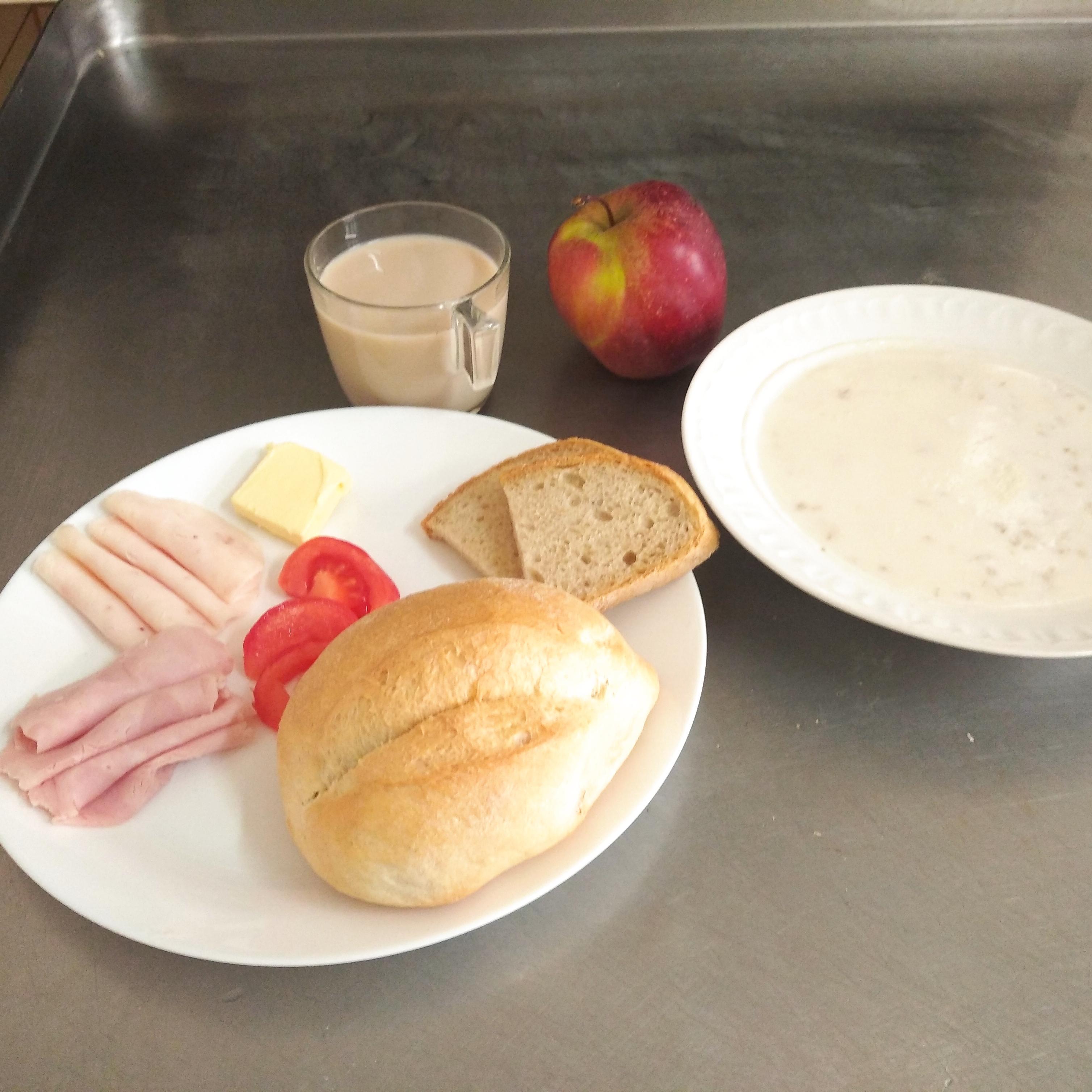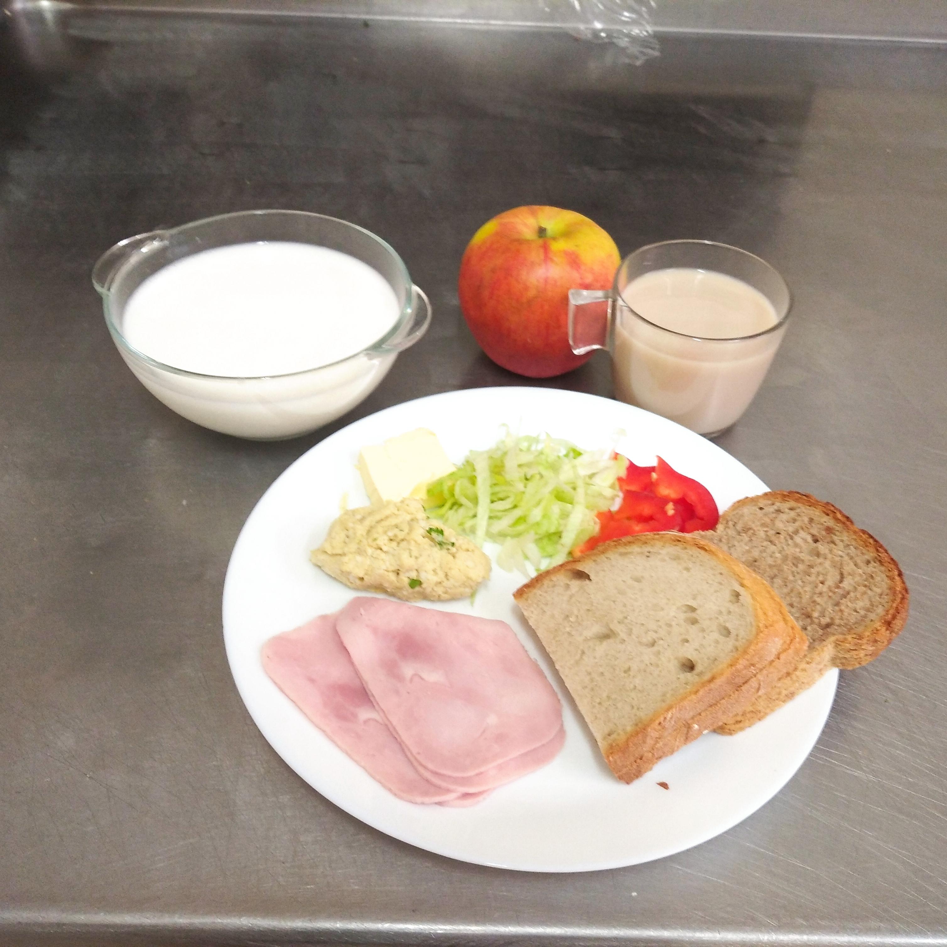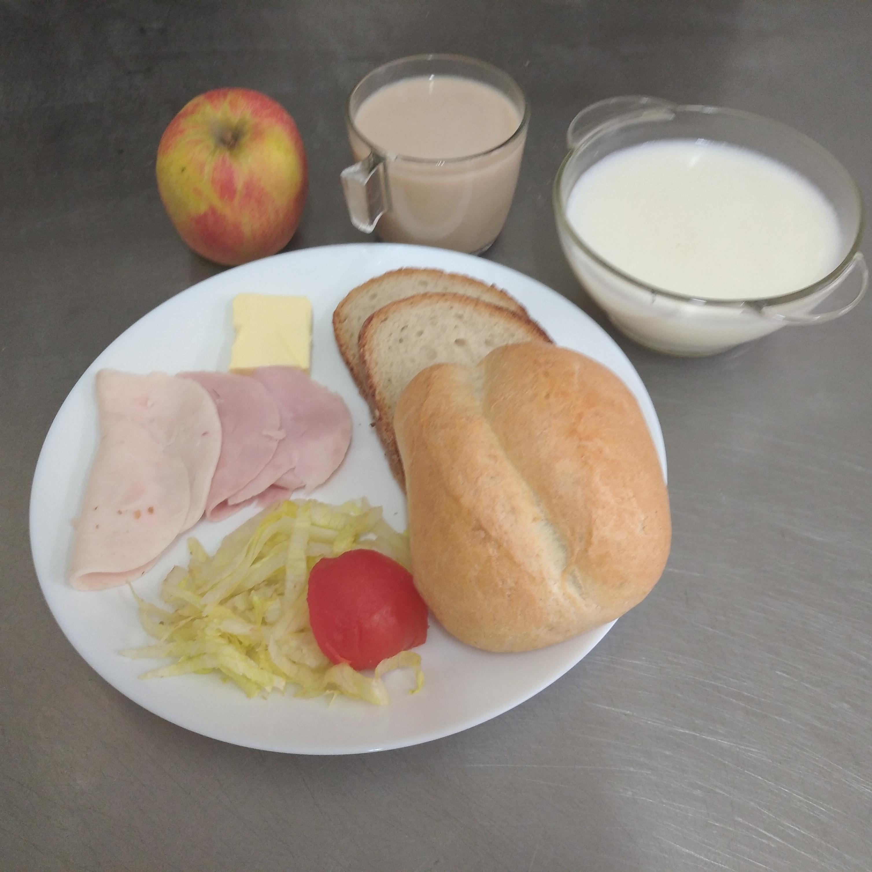 | 4.05.2024 | śniadanie | chleb/graham 150g(GLU), masło 20g(MLE), herbata 200ml pasztet drobiowy 30g(GLU,SOJ,GOR,SEL), ser żółty 30g(MLE), sałata, ogórek kiszony 20g, jogurt naturalny 150ml(MLE) | chleb/bułka 150g(GLU), masło 20g(MLE), herbata 200ml, szynkowa z indyka 30g(GLU,SOJ,GOR), polędwica drobiowa 30g(GLU,SOJ,GOR), sałata, pomidor bez skórki 30g | omlet(JAJ,MLE,GLU), sałata, pomidor bez skórki 30g, jogurt naturalny 150ml(MLE) | chleb graham 100g(GLU), masło 10g(MLE), herbata b/c 200ml, blok szynkowy30g(GLU,SOJ,GOR), ser żółty 30g(MLE) sałata, pomidor 30g | ||