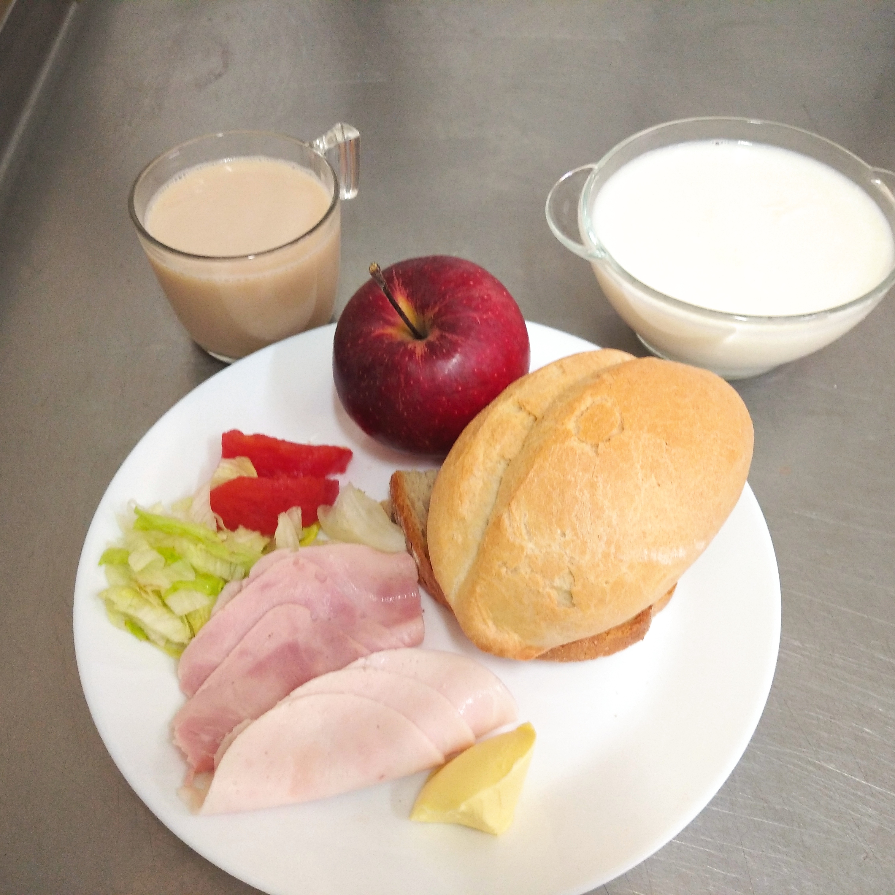 | 02.11.2023 | śniadanie | zupa mleczna z płatkami owsianymi 300ml, chleb graham 150,g masło 20g, kawa biała 200ml, blok szynkowy 30g pasta jajeczna 25g, sałata, pomidor 30g, gruszka | zupa mleczna z płatkami owsianymi 300ml, chleb/ bułka150g, masło 20g, kawa biała 200ml, ser biały 50g, miód 25g dżem 25g sałata, banan | chleb graham 100g, masło 10g, kawa biała b/c 200ml, ser biały z pietruszką zieloną 30g, szynkowa z indyka 30g, sałata, pomidor 30g, jogurt naturalny 150ml, jabłko | |||