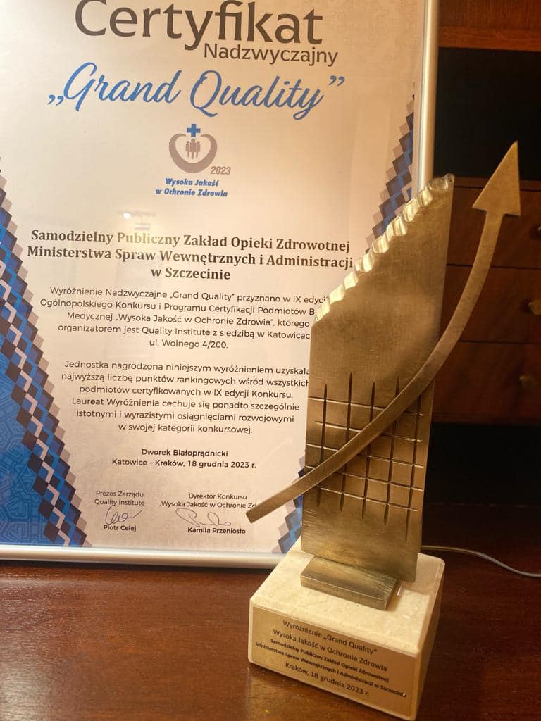 Wyróżnienie nadzwyczajne Grand Quality- jednostka wyróżniona tym odznaczeniem otrzymała najwyższą liczbę punktów rankingowych wśród wszystkich podmiotów certyfikowanych w tym ogólnopolskim konkursie. Podmiot taki wyróżnia się w skali kraju, świadczy usługi medyczne wykazując się nowoczesnym i innowacyjnym podejściem do zarządzania.