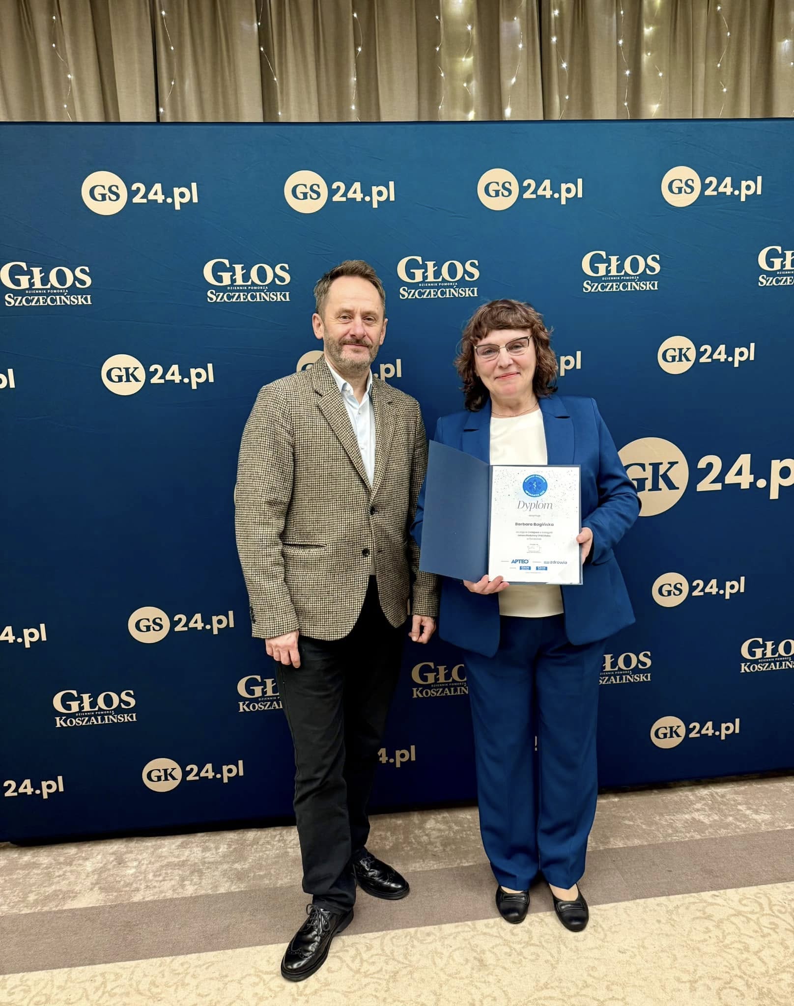 lekarza Barbary Bagińskiej -1 miejsce Lekarz Rodzinny w Szczecinie, laureatki w kategorii lekarz Podstawowej Opieki Zdrowotnej Roku w etapie wojewódzkim,