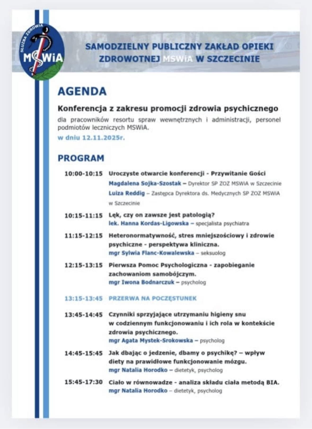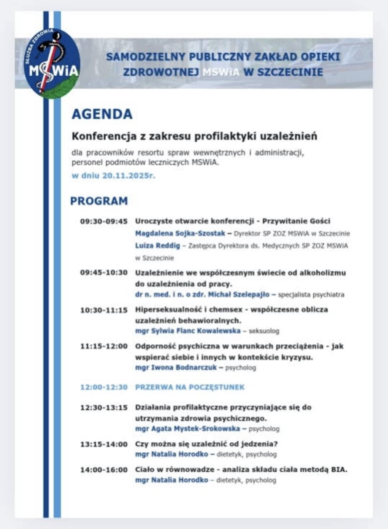 SP ZOZ MSWiA w Szczecinie Luizę Reddig we współpracy z Departamentem Zdrowia MSWiA.