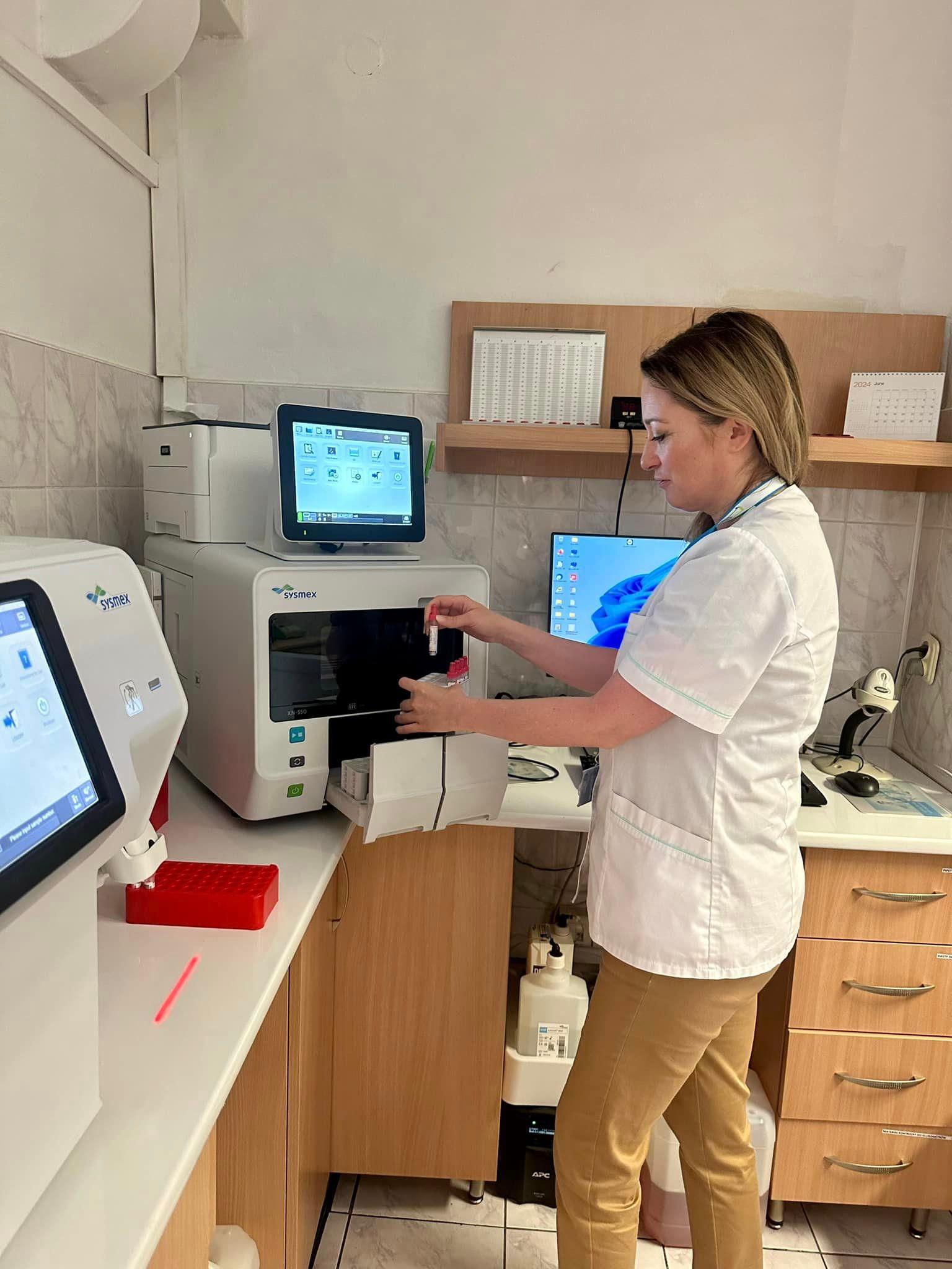biochemii, immunochemii, koagulologii, hematologii, analityki ogólnej, serologii, banku krwi. Kierownik - Pani mgr Agnieszka Puchała.