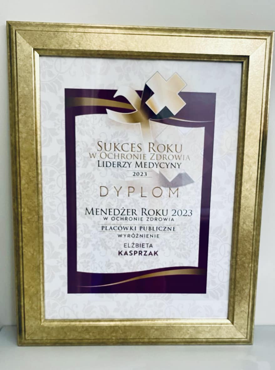 Mamy zaszczyt poinformować, iż kapituła ogólnopolskiego prestiżowego Konkursu ,,Sukces roku 2023 w ochronie zdrowia - Liderzy Medycyny” przyznała pierwsze wyróżnienie w kategorii ,,Menedżer Roku 2023 w Ochronie Zdrowia – Placówki publiczne” Pani dr Elżbiecie Kasprzak-Dyrektorowi SP ZOZ MSWiA w Szczecinie.