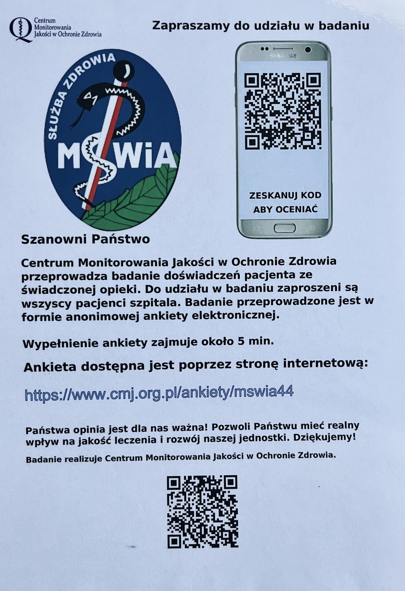 Udział w badaniu pozwoli Państwu mieć realny wpływ na jakoś leczenia, rozwój naszej jednostki, zwróci uwagę na Państwa oczekiwania.