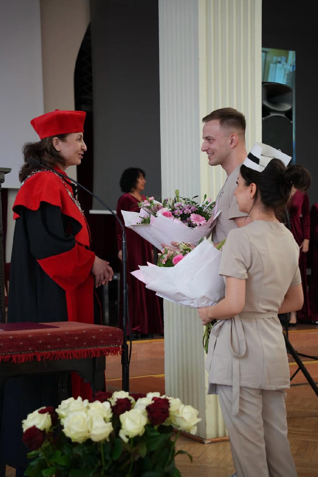 Gratulacje młodym pielęgniarkom i pielęgniarzom złożyła prorektor PUM, prof. dr hab. n. med. Violetta Dziedziejko - odczytała również list gratulacyjny od Rektora Uniwersytetu prof. dr hab. n. med. Leszka Domańskiego. Również Przewodnicząca Szczecińskiej Izby Pielęgniarek i Położnych Pani Gabriela Hofman złożyła gratulacje i życzenia.