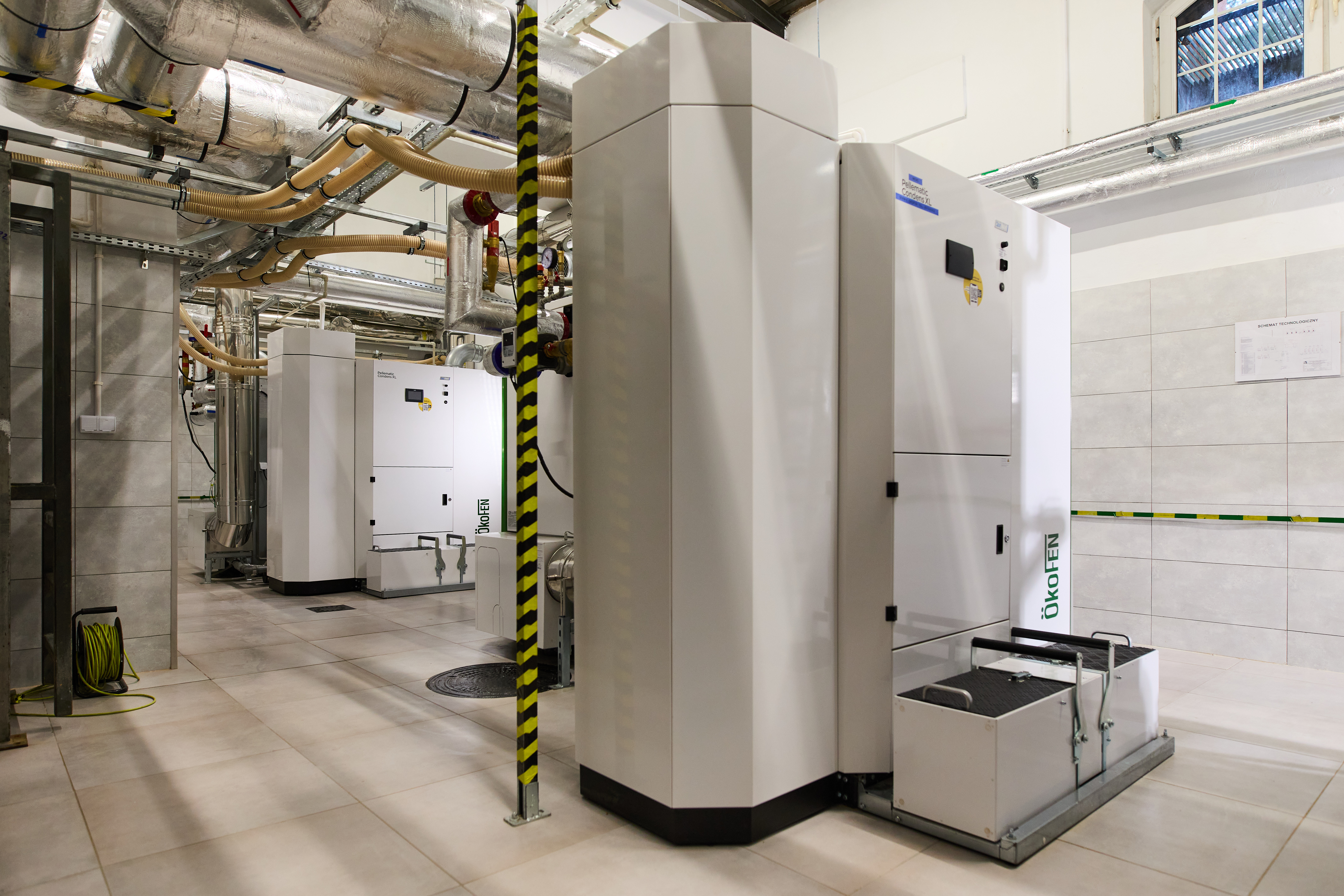 - montaż nowoczesnej kaskady kotłów kondensacyjnych ÖkoFEN o łącznej mocy 650 kW