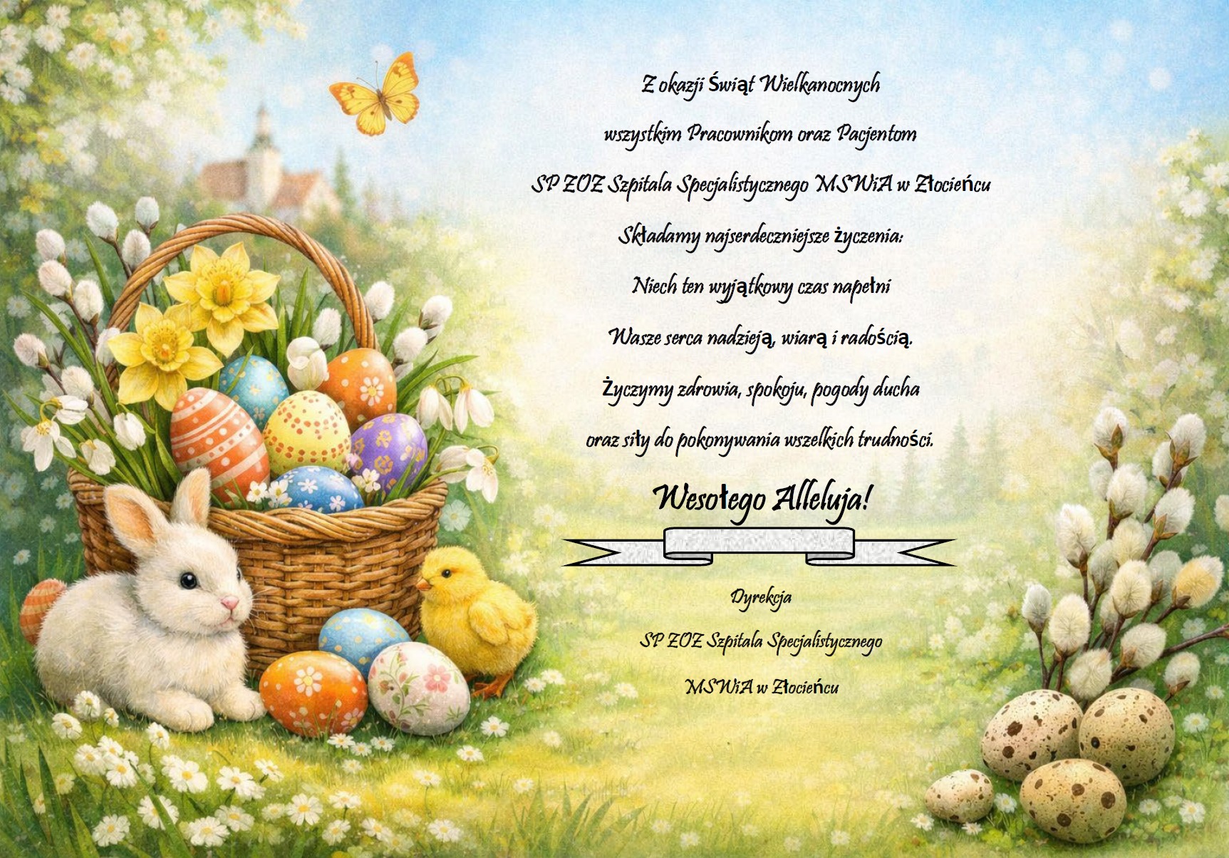 Z tej okazji składamy również najserdeczniejsze życzenia zdrowych, spokojnych i pełnych nadziei Świąt Wielkanocnych wszystkim Pracownikom oraz Pacjentom.