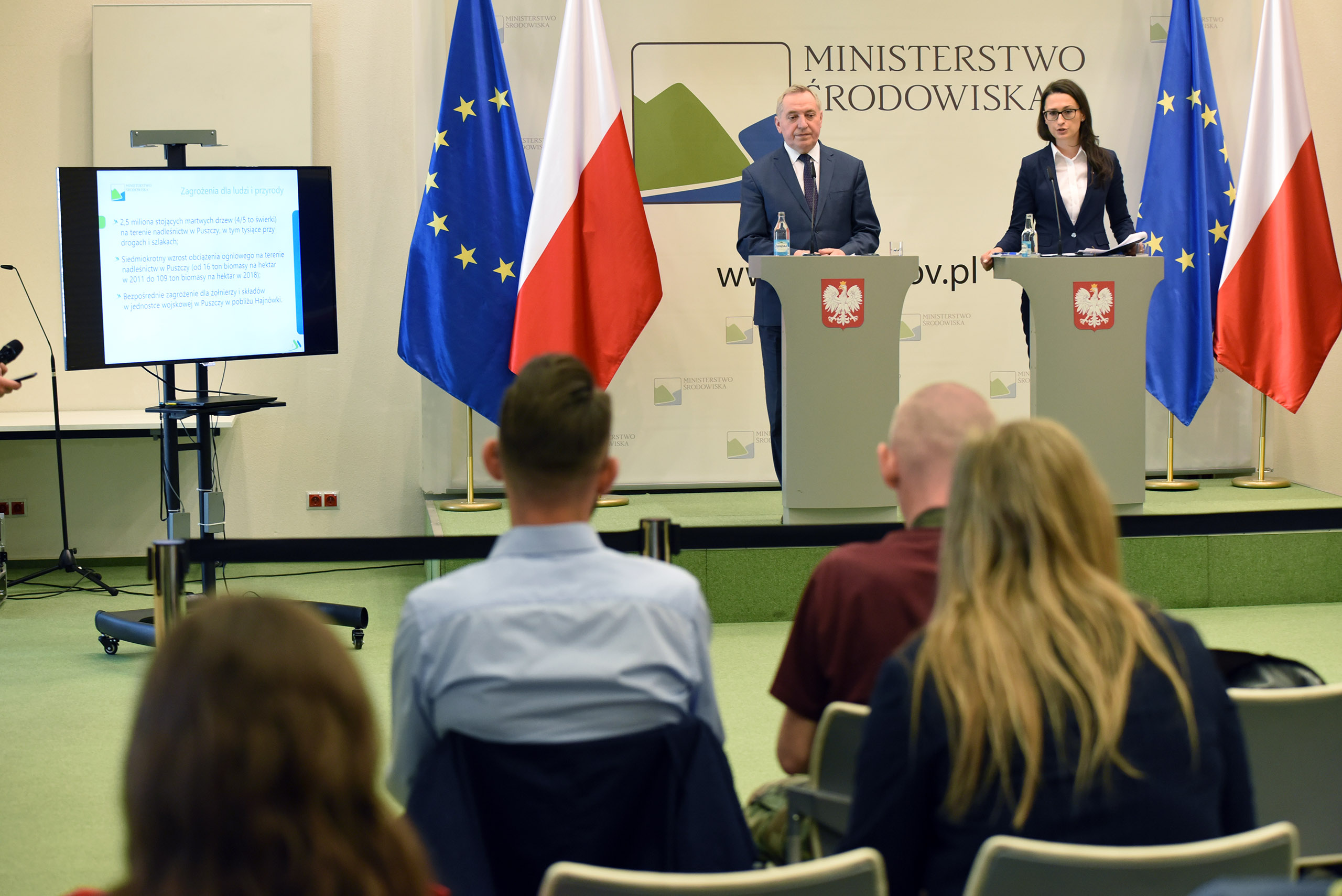 Narastające zagrożenie dla życia i zdrowia mieszkańców oraz turystów, wysoki poziom zagrożenia pożarowego oraz konieczność aktywnej ochrony cennych siedlisk i gatunków zmuszają leśników z terenów nadleśnictw w Puszczy Białowieskiej do podjęcia niezbędnych działań. Dlatego minister środowiska Henryk Kowalczyk zaprezentował w trakcie dzisiejszej konferencji pakiet kompleksowych propozycji rozwiązań prawnych dla trzech puszczańskich Nadleśnictw – Białowieża, Browsk i Hajnówka. W konferencji wzięła udział również wiceminister Małgorzata Golińska.