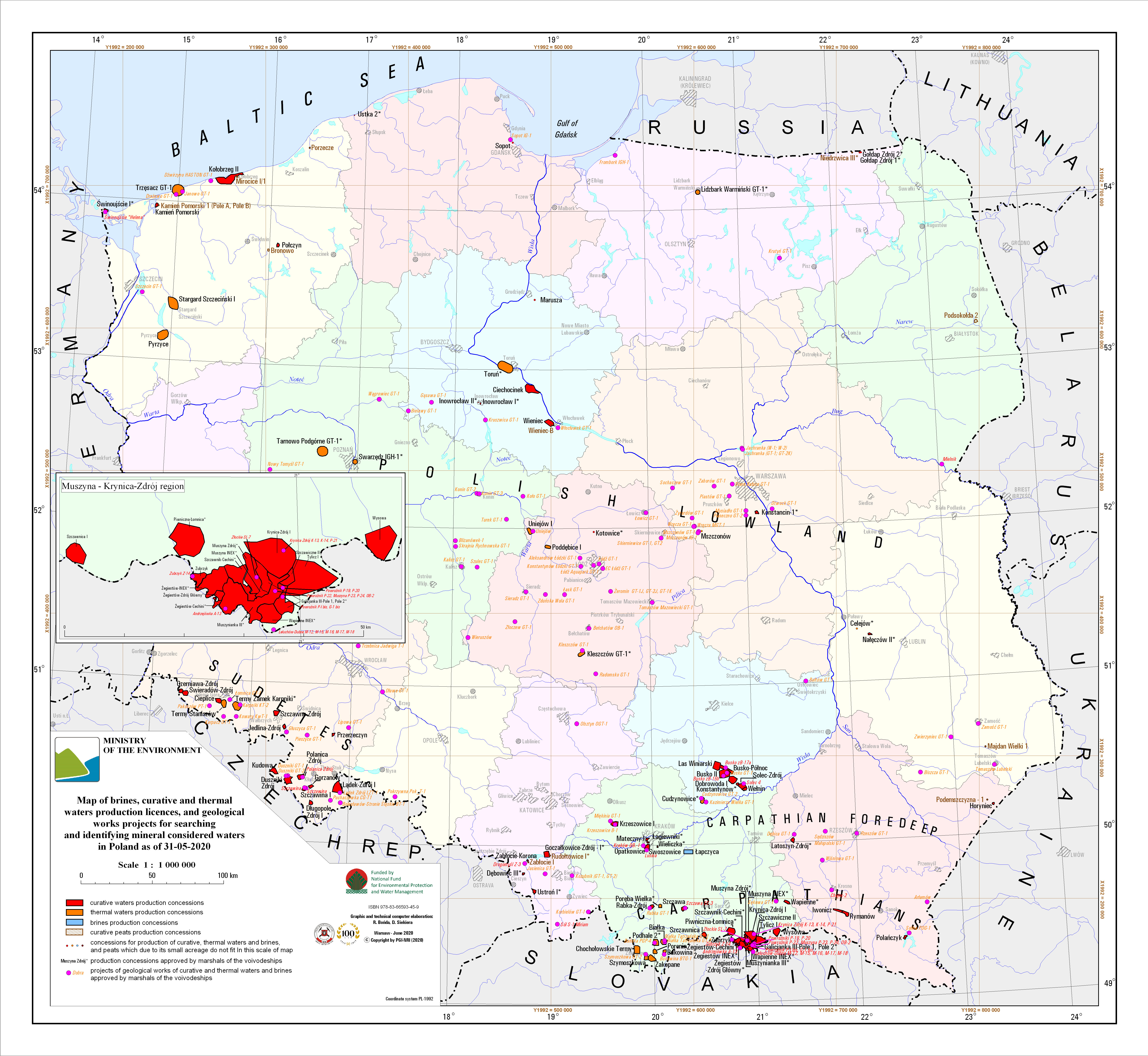 wody_05_20.jpg 9.21MB Map of brines, curative and thermal waters production licences, and geological works projects for searching and identifying mineral considered waters in Poland