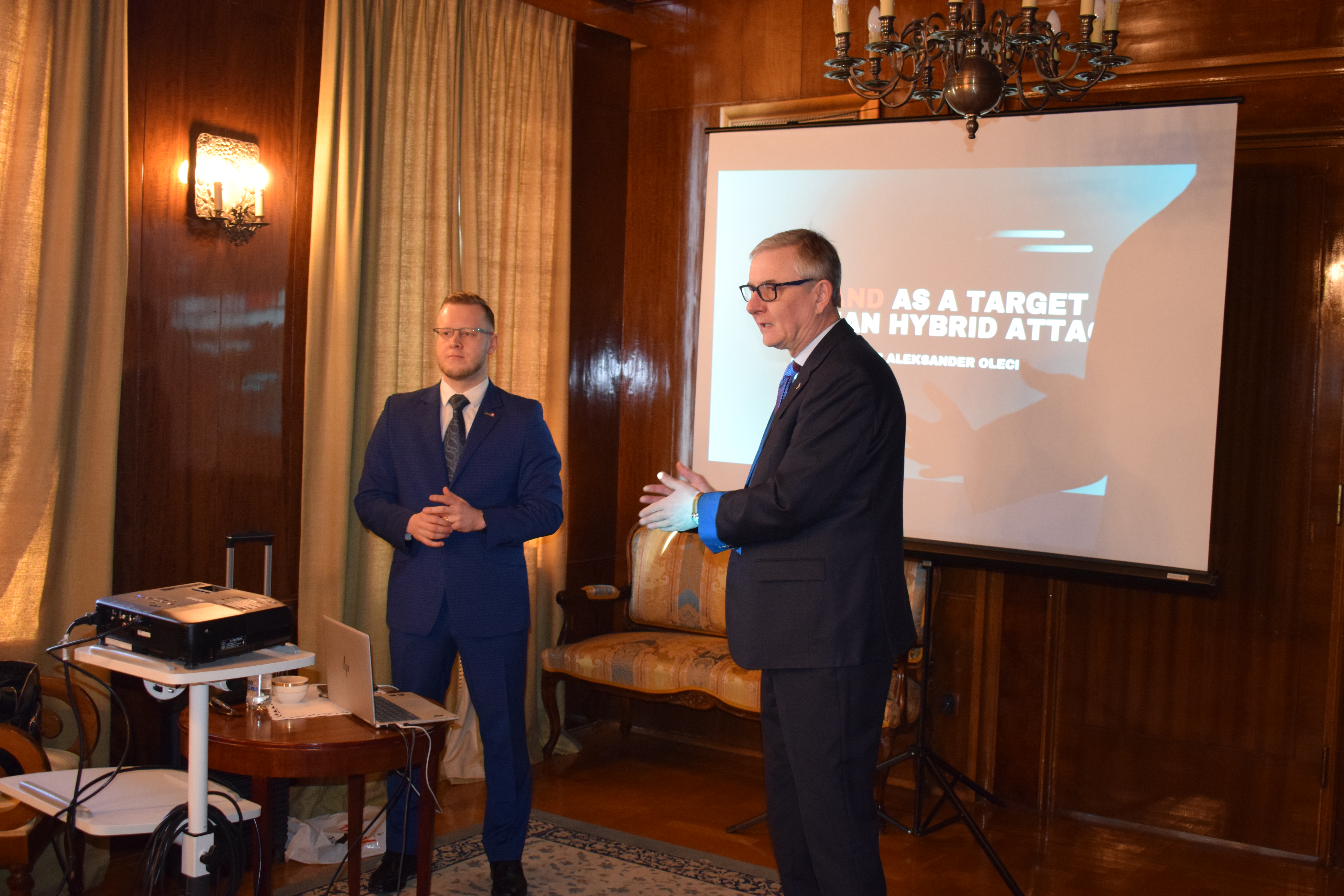 Tänään suurlähetystössä vieraili Defence24.pl-portaalin edustaja, tohtori Aleksander Olech, joka esitteli raportin Venäjän ja Valko-Venäjän Puolaan kohdistamista hybridi-iskuista.