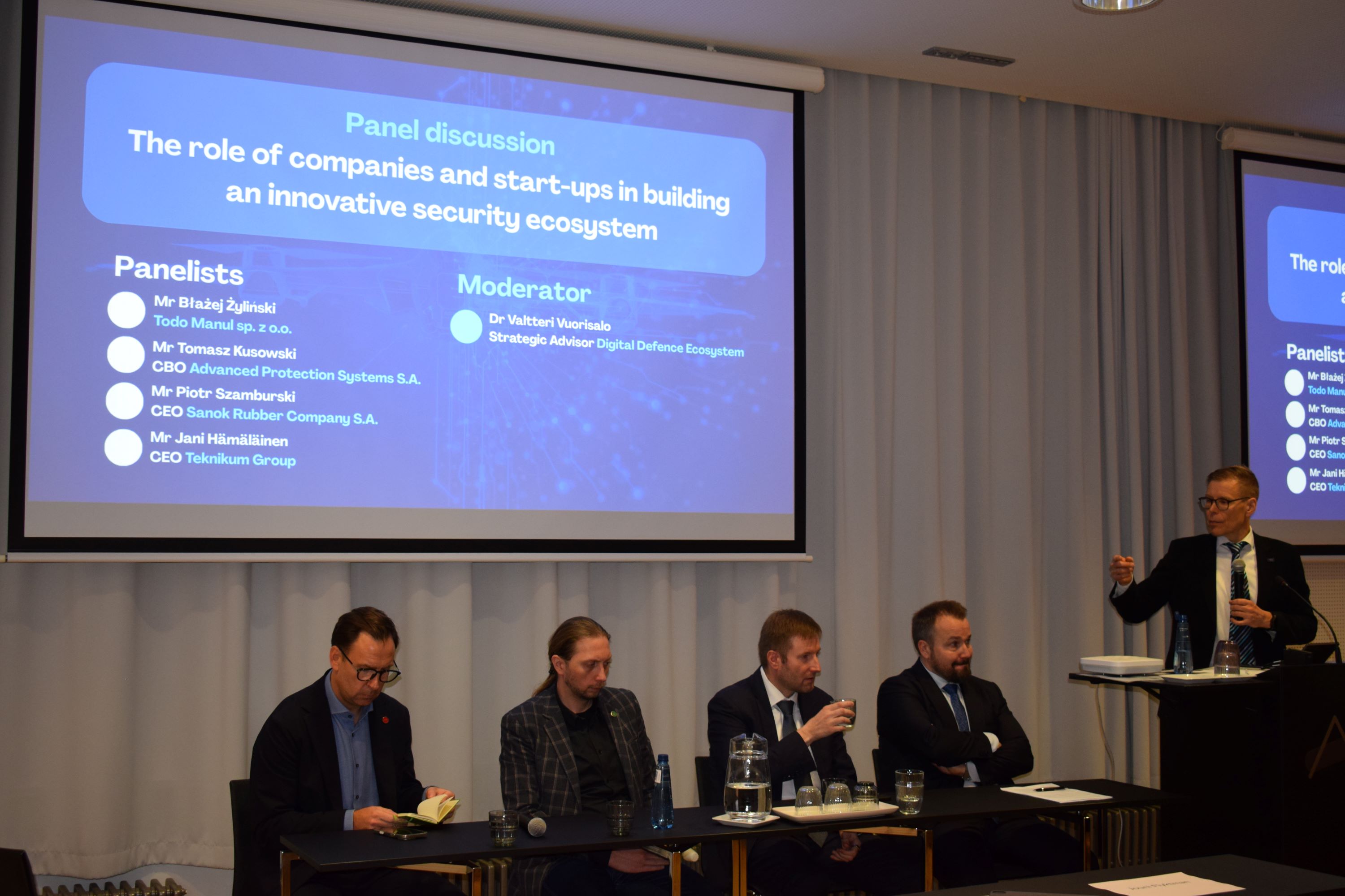 „The Role of Companies and Start-ups in Building an Innovative Security Ecosystem” -paneeli, johon osallistuivat Todo Manulin, Advanced Protection Systemsin, Sanok Rubber Companyn ja Teknikum Groupin edustajat, keskittyi pk-yritysten ja teknologisten innovaattoreiden rooliin dynaamisten ja tulevaisuuteen suuntautuneiden turvallisuusratkaisujen luomisessa.