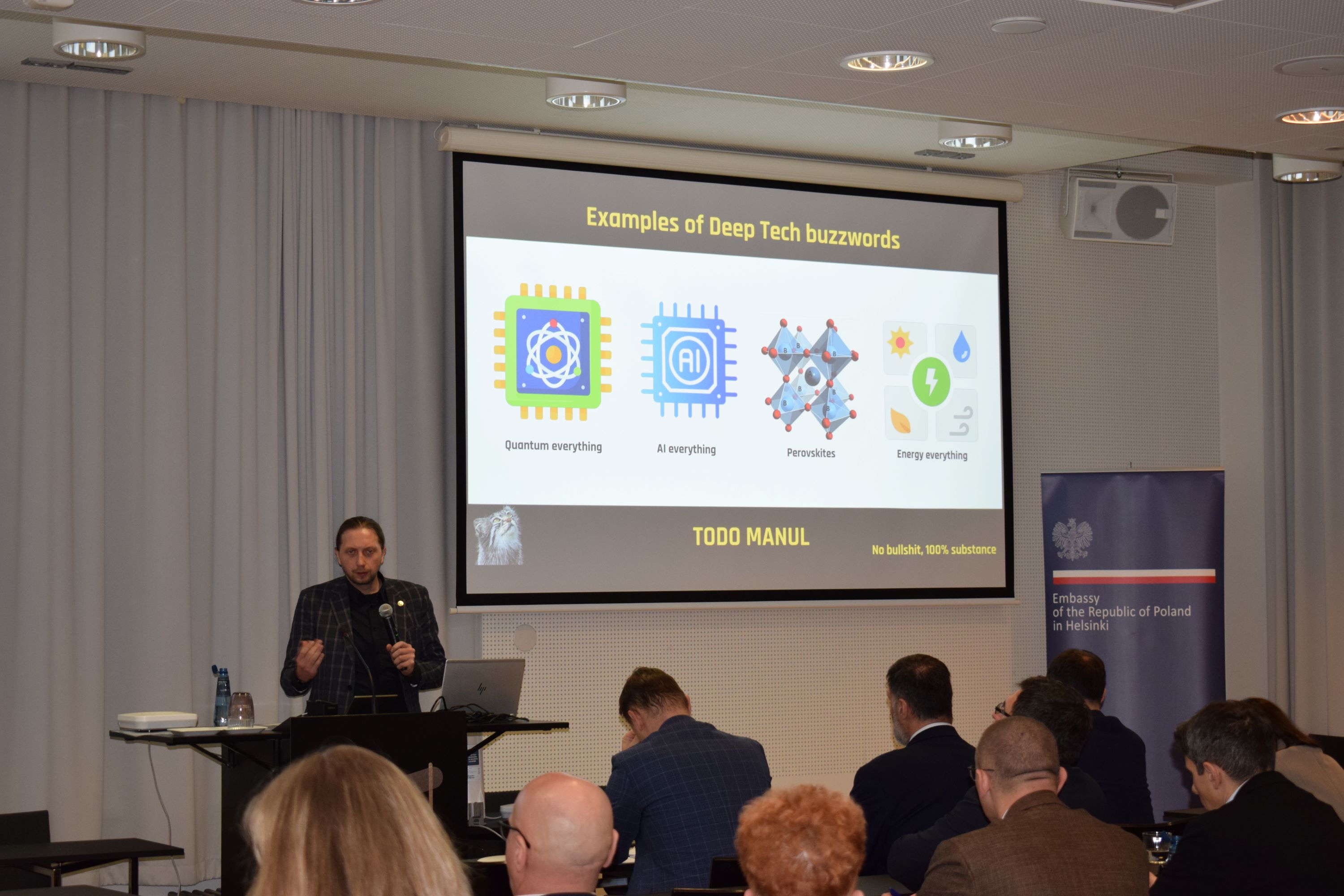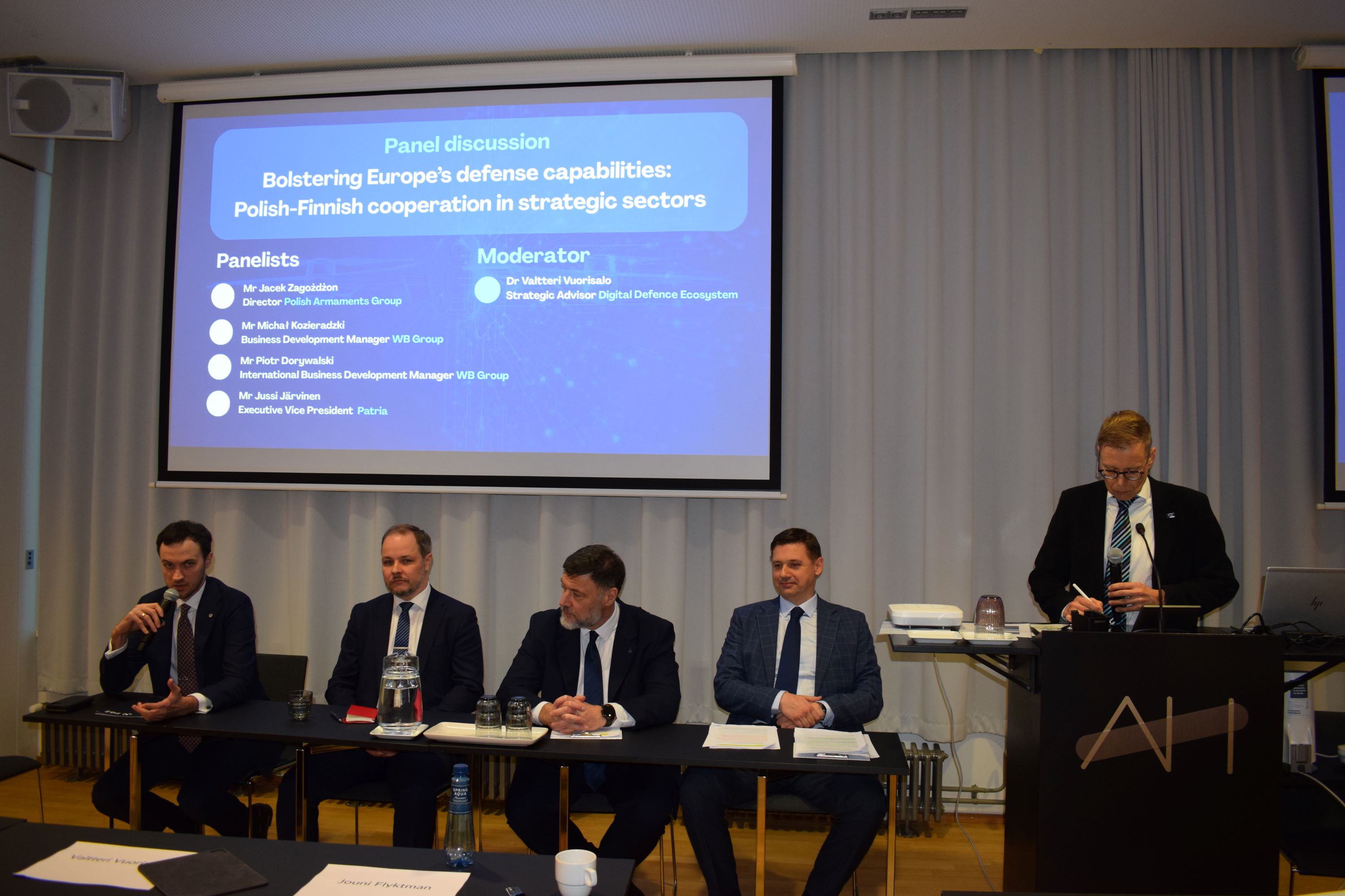 Esityksiä pitivät: Jacek Zagożdżon, Polska Grupa Zbrojeniowan (PGZ) johtaja; Michał Kozieradzki, WB Groupin liiketoiminnan kehityspäällikkö; Jussi Järvinen, Patrian varatoimitusjohtaja, suojatun liikkuvuuden portfolio; Jouni Flyktman, IQM Quantum Computersin puolustus- ja turvallisuusjohtaja; Błażej Żyliński, Todo Manulin toimitusjohtaja; Tomasz Kusowski, Advanced Protection Systemsin liiketoimintajohtaja; Piotr Szamburski, Sanok Rubber Companyn toimitusjohtaja, ja Jani Hämäläinen, Teknikum Groupin toimitusjohtaja.