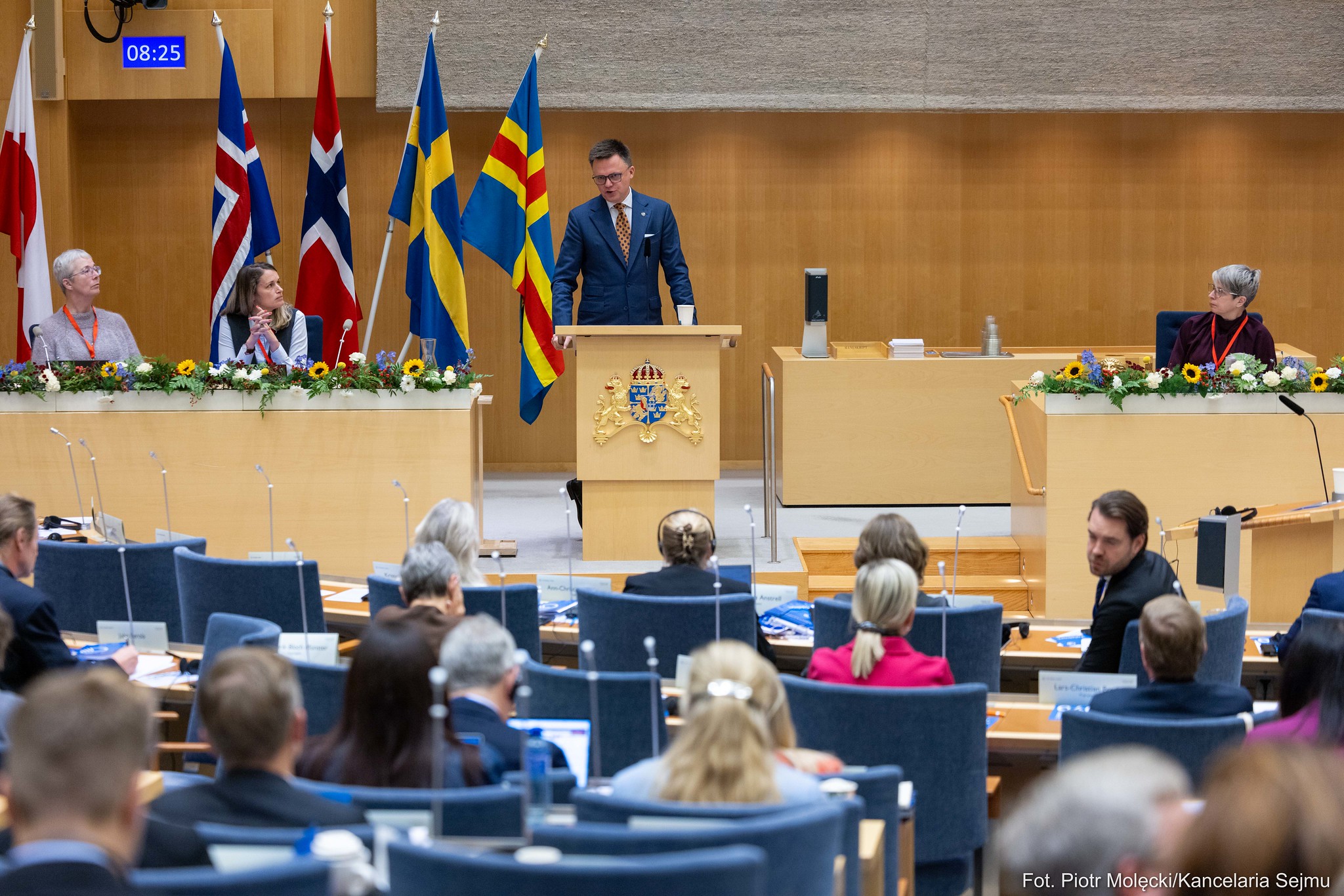 The Nordic Council Session is the largest political summit in the region and serves as a consultative forum for the parliaments and governments of the Nordic countries and their autonomous territories. This year’s session brought together 87 parliamentarians from Denmark (including representatives of the Faroe Islands and Greenland), Sweden, Norway, Iceland, and Finland (with representatives from the Åland Islands). During the plenary session, the Marshal was accompanied by the Ambassador of the Republic of Poland to Sweden, Karolina Ostrzyniewska.