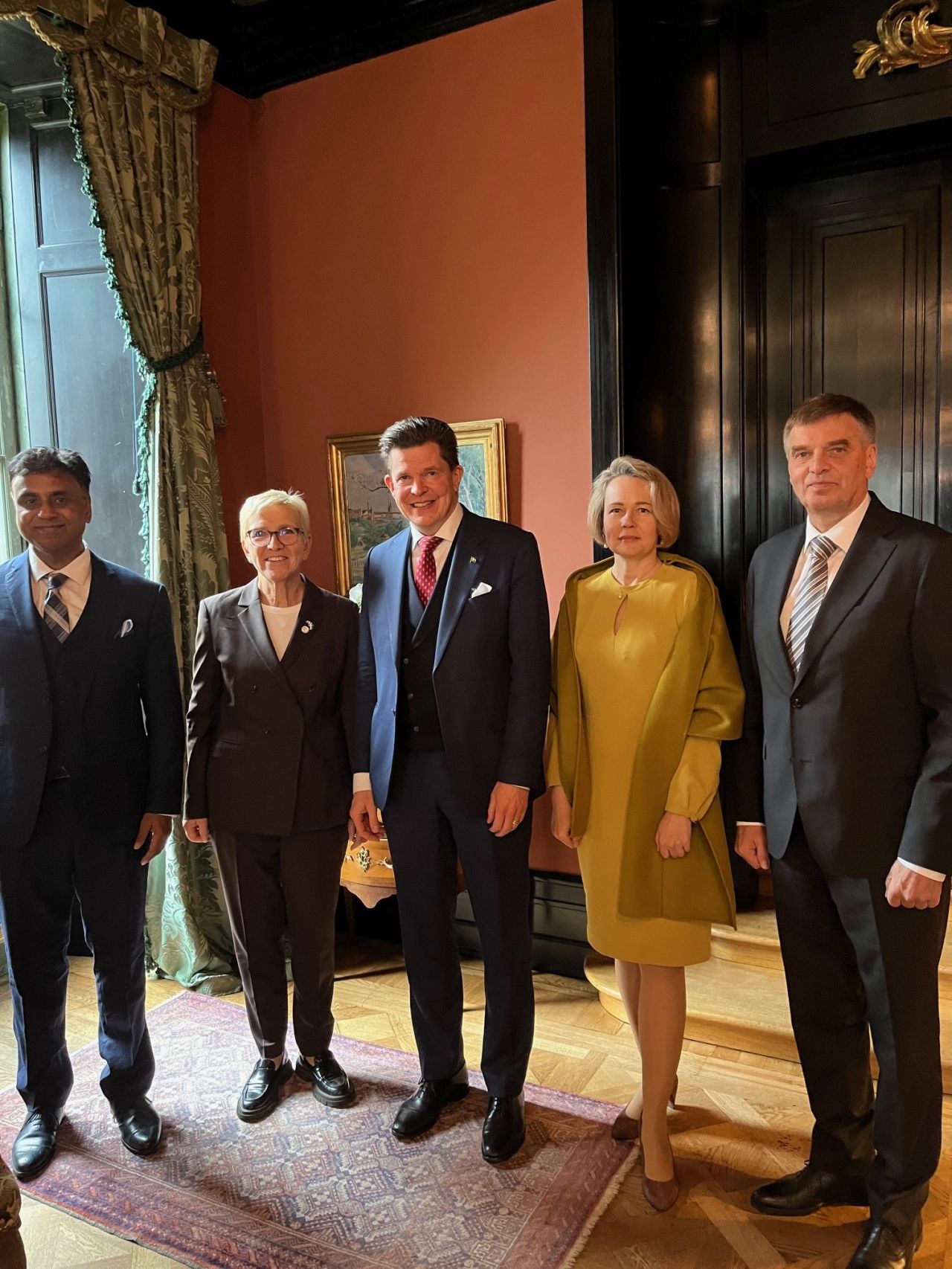 The meeting was hosted in the exceptional setting of Villa Bonnier, designed in 1927 by Ragnar Östberg, the architect of Stockholm City Hall. Since 1981, together with its furnishings, artworks, and library, it has remained the property of the Swedish state and serves the Speaker of the Riksdag for official meetings.