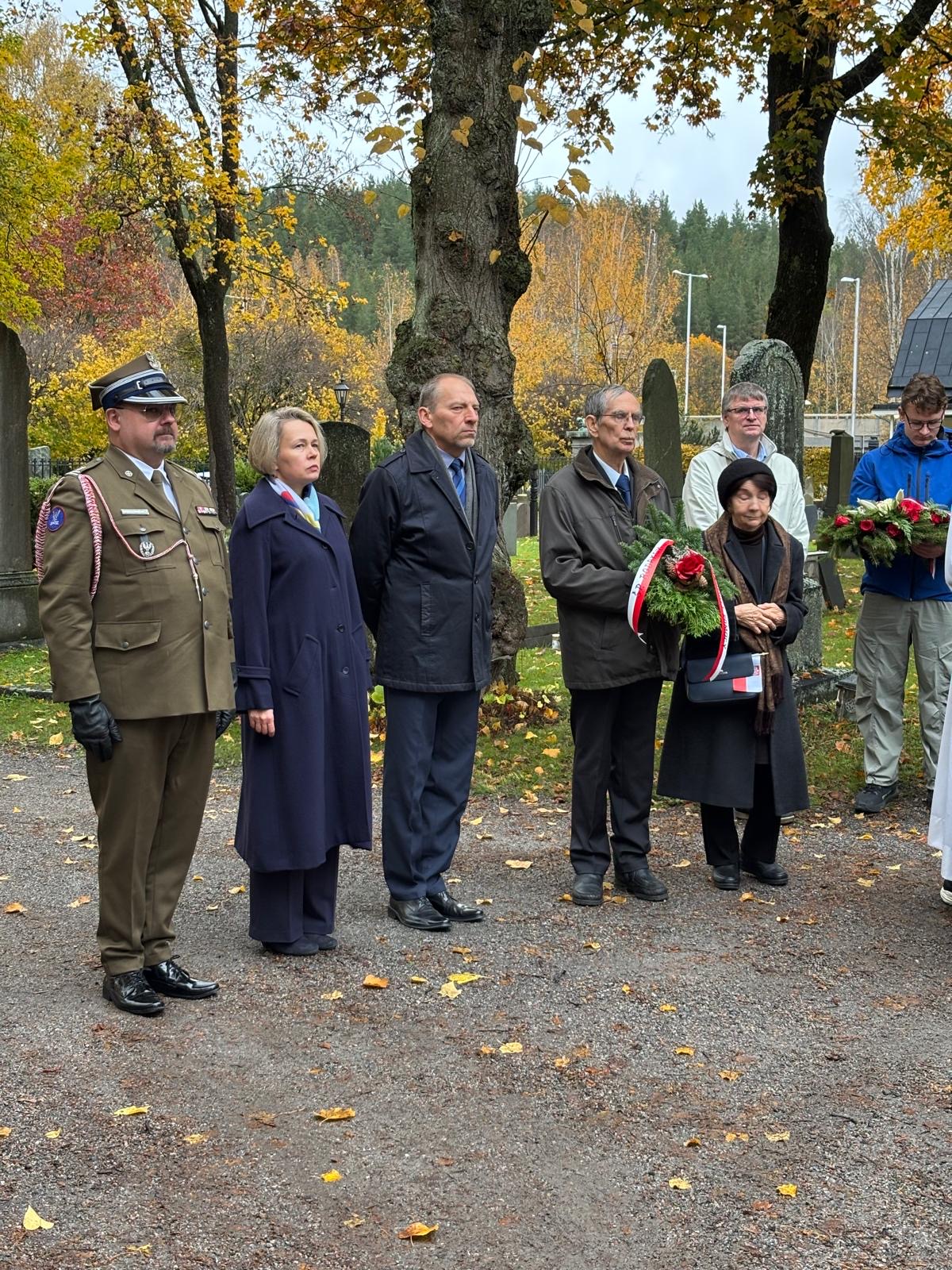 On 25 October, a traditional ceremony was held at Haga Norra Cemetery in Solna, organised by the Congress of Poles in Sweden and the Polish Relief Committee. The ceremony was attended by the Ambassador of the Republic of Poland to Sweden, Karolina Ostrzyniewska, Defense Attaché Colonel Rafał Grzegorkiewicz, and Deputy Consul Andrzej Jach. The Holy Mass was celebrated by priests from the Polish Catholic Mission. Following the prayers, wreaths and flowers were laid at the Cross, and the graves and Memorial Site dedicated to distinguished compatriots, veterans, Polish independence heroes, prisoners of German Nazi concentration camps, and members of the diplomatic corps were visited. The event was also attended by representatives of the Polish School named after Katarzyna Jagiellonka, scouts, and members of Polish community organizations.