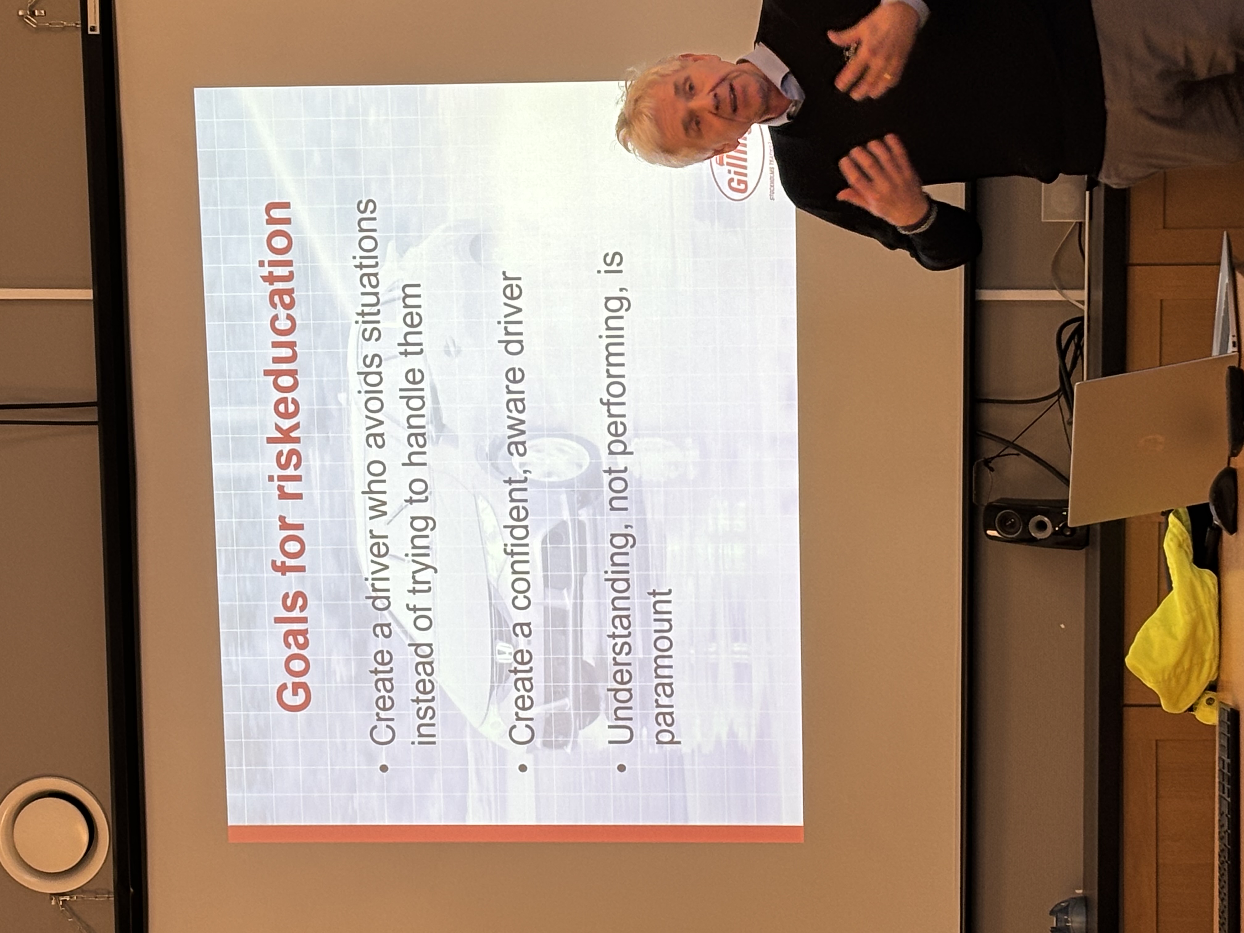 The workshops were accompanied by a study visit to the driver examination center in Gillinge, where participants could test their driving skills on a skid pad (Swedish: Halkbana) - a mandatory part of Swedish driver training.