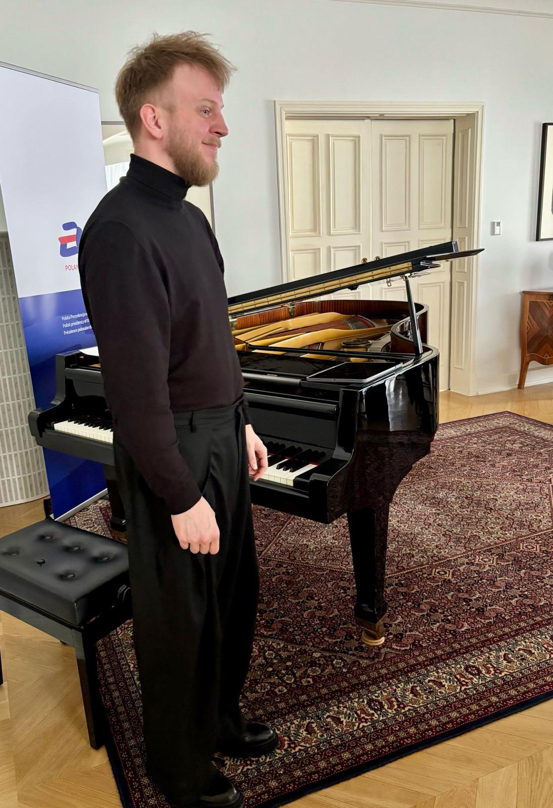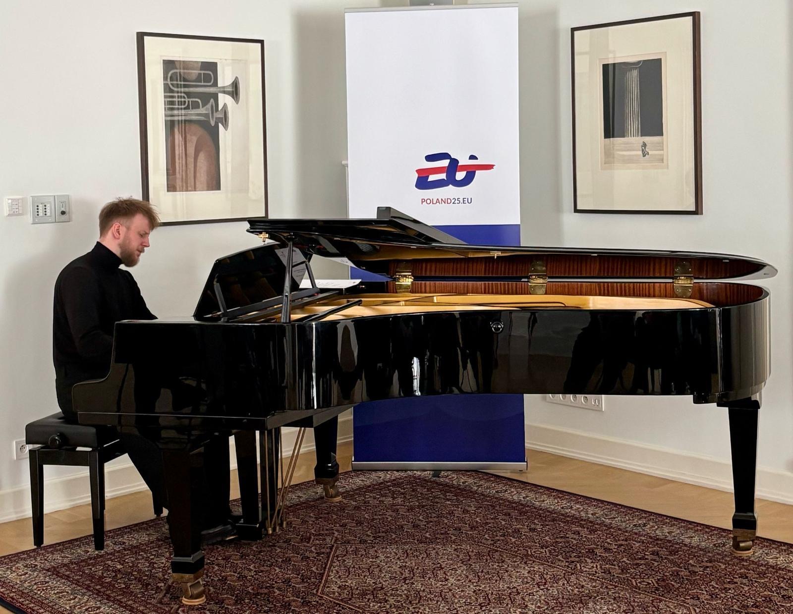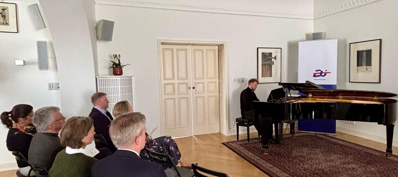 A piano concert dedicated to the works of Polish composers Fryderyk Chopin, Wojciech Kilar and Karol Szymanowski was held at the Residence of the Polish Ambassador in Stockholm as part of Polands Presidency of the EU Council. The performer was Tymoteusz Bies, a pianist, composer and music producer, laureate of numerous competitions including the prestigious International Fryderyk Chopin Piano Competition.