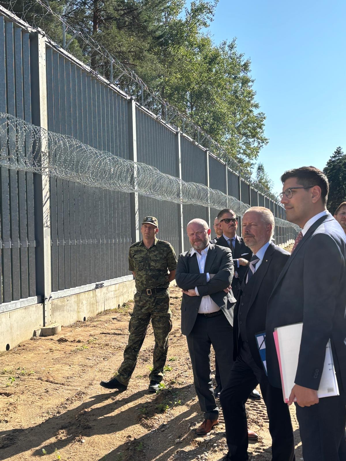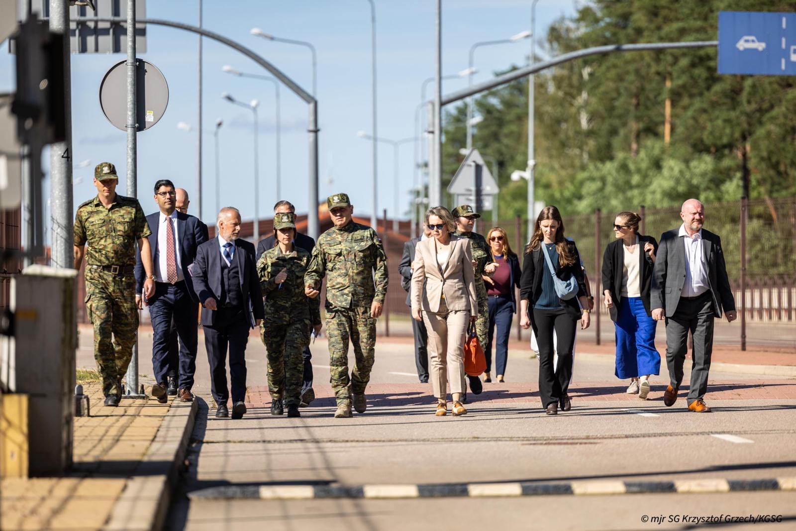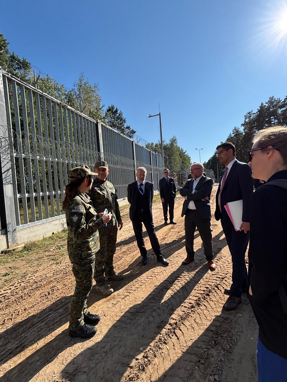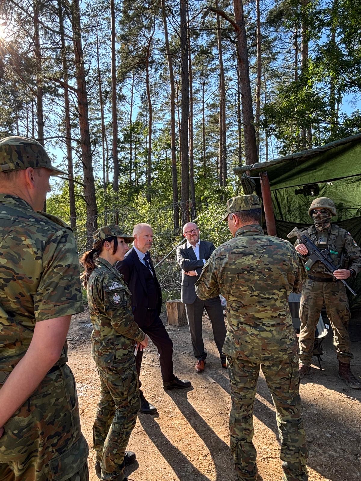 The ministers also went directly to the Polish–Belarusian borderline, where they were presented with the functioning of both the physical and electronic barriers in the field, along with new solutions for their reinforcement and modernisation. During the stay in Połowce, the delegations were accompanied by Brigadier General Sławomir Klekotka, Commander of the Podlasie Division of the Border Guard.