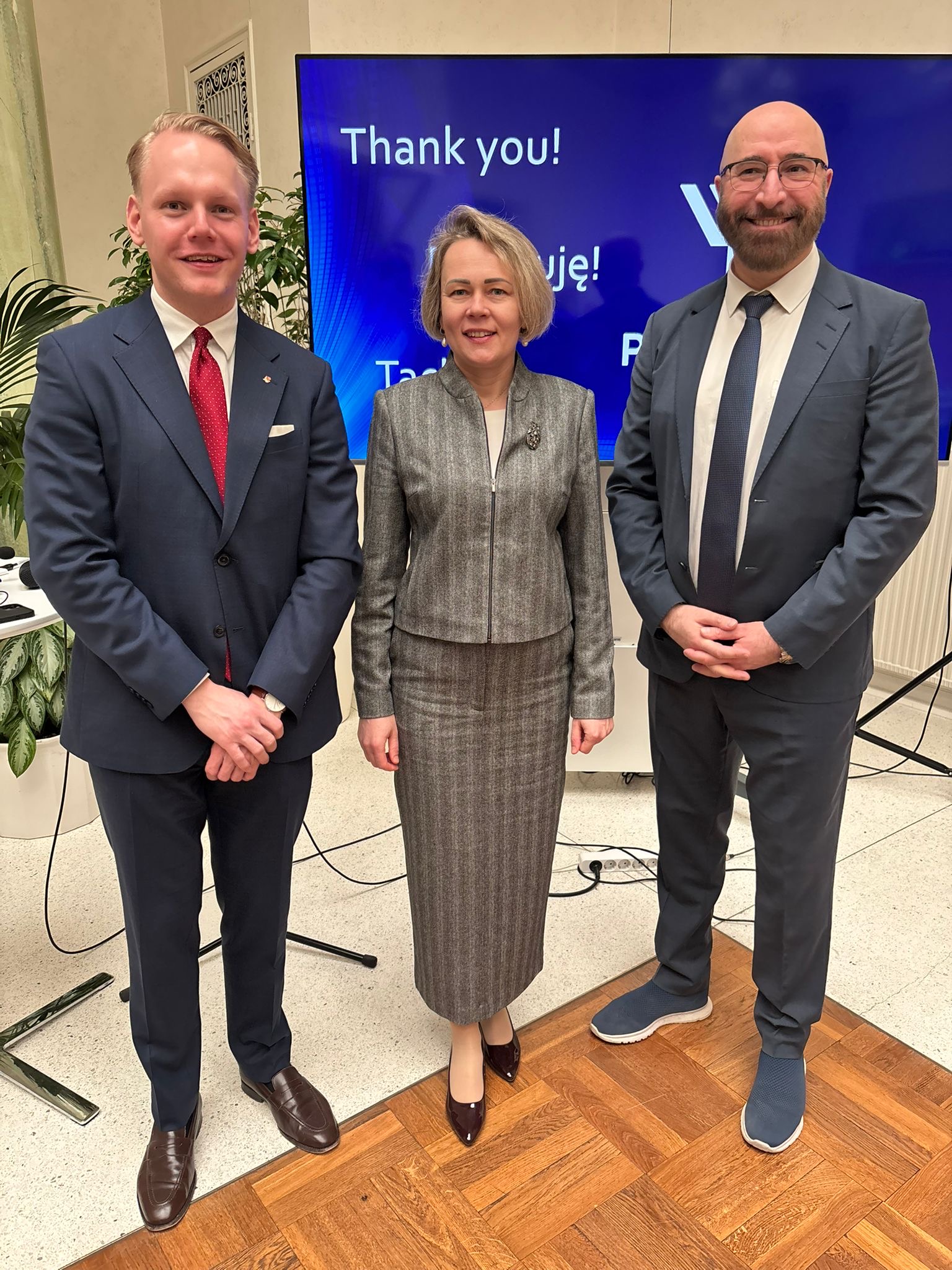 Ambassador Karolina Ostrzyniewska highlighted the growing trade between Poland and Sweden, as well as the deepening bilateral relations, evidenced by the signing of the Strategic Partnership between Poland and Sweden in Harpsund in November 2024, the first Swedish-Polish Business Summit on 17 November 2025, and the first official visit in 15 years of the Swedish Royal Couple to Poland on 10–12 March 2026.