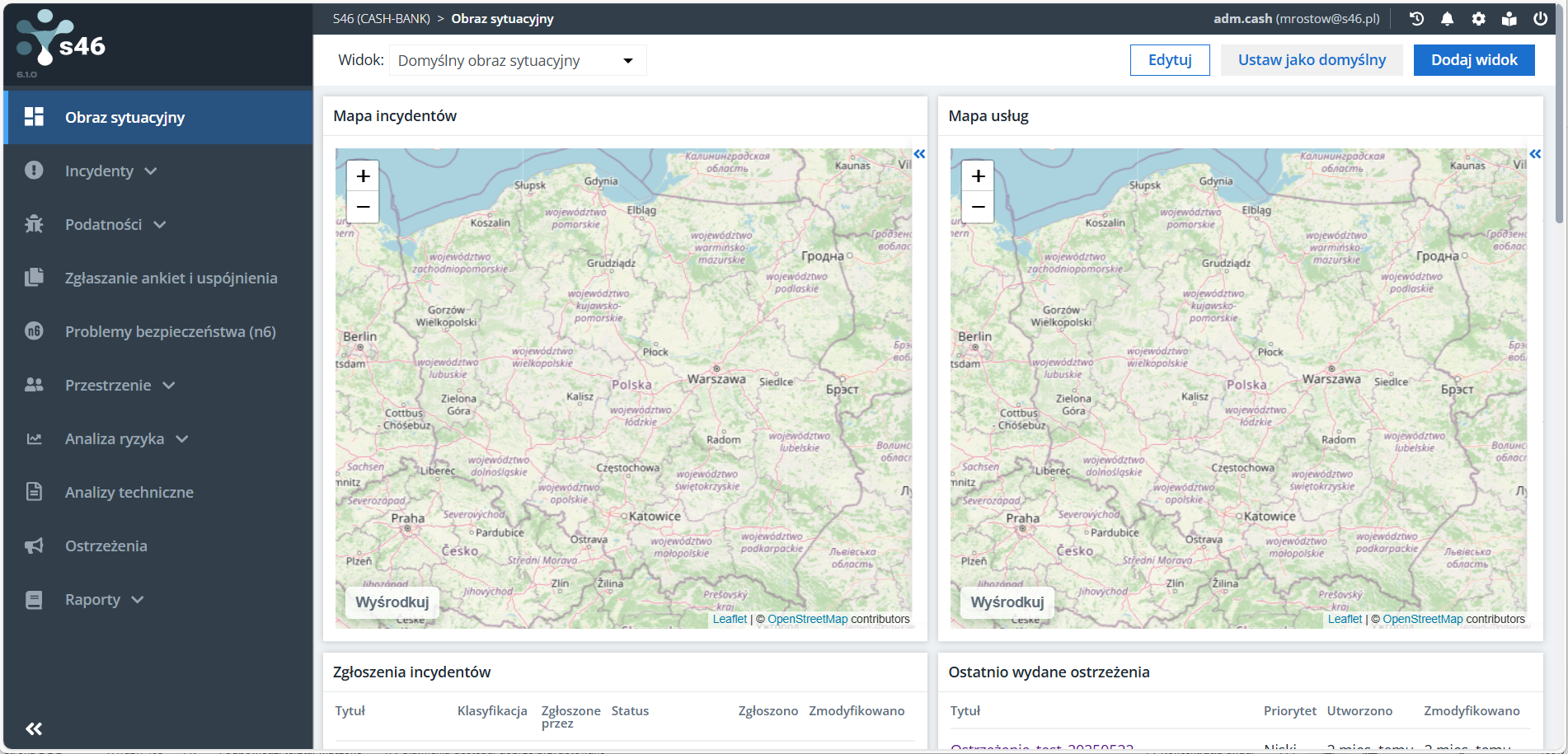 Zgłoszenie usług kończy etap onboardingu podmiotu do Systemu S46. Możesz korzystać z jego funkcji takich jak zgłaszanie incydentów lub odbieranie ostrzeżeń i analiz technicznych. Funkcje te opisujemy w odpowiednich instrukcjach.