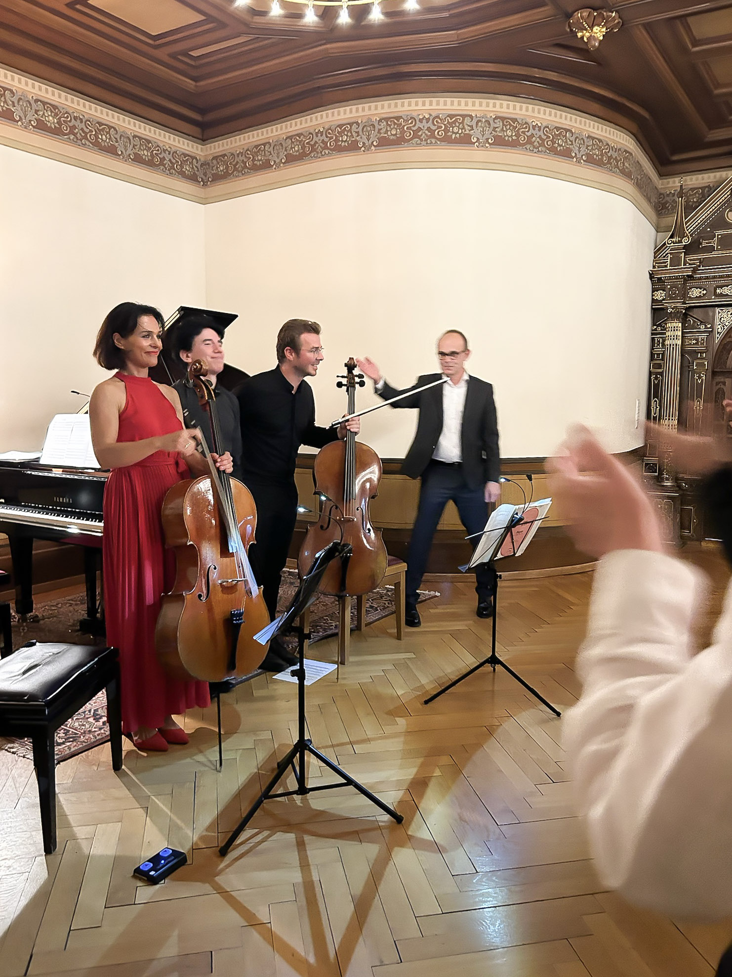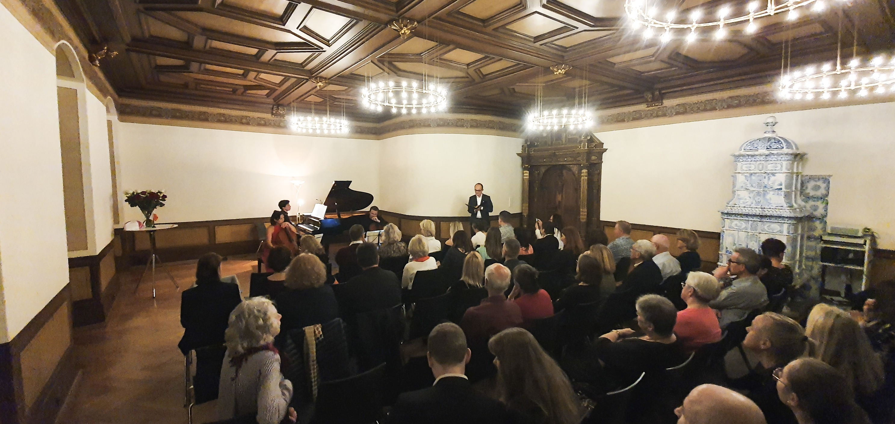 Goście zgromadzeni w sali reprezentacyjnej Stadthaus wysłuchali utworów m.in. Fryderyka Chopina, Roberta Schumanna, Ernesta Blocha i Antonio Vivaldiego w wykonaniu wybitnych muzyków: