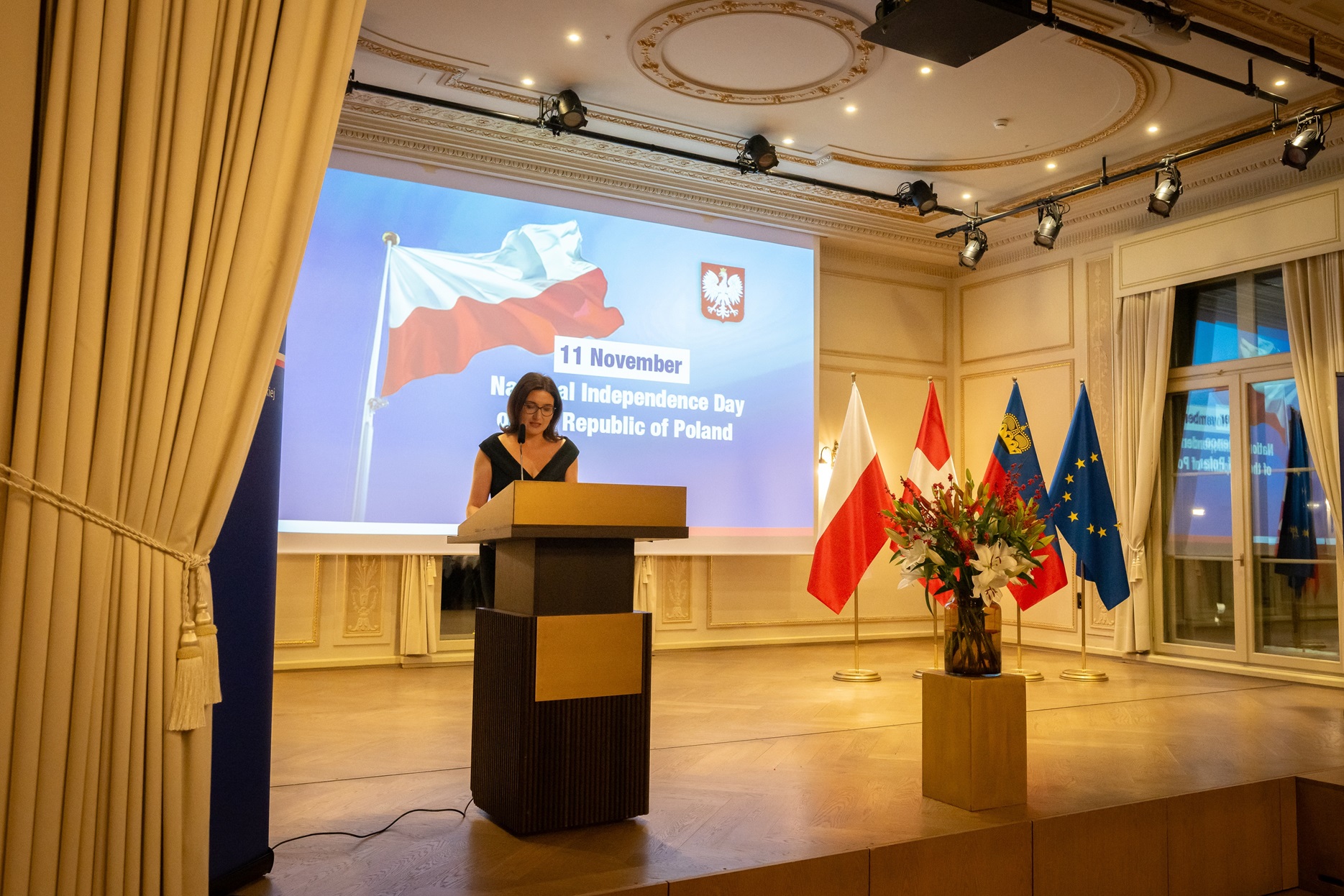 Uroczystość rozpoczęła się od wysłuchania hymnów Polski, Szwajcarii i Liechtensteinu i wystąpienia CdA a.i., która podkreśliła bliskie związki łączące Polskę i Szwajcarię, wskazując na wieloletnią tradycję przyjaźni i współpracy.