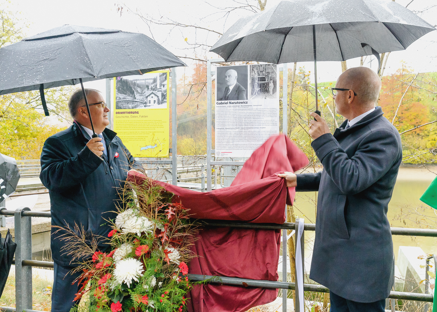 Następnie delegacje wzięły udział w uroczystym odsłonięciu tablicy pamiątkowej poświęconej Prezydentowi Gabrielowi Narutowiczowi nad jeziorem Gübsensee. Jest to miejsce, w którym na początku XX wieku oddano do użytku zaprojektowaną przez prof. Narutowicza elektrownię wodną Kubel.