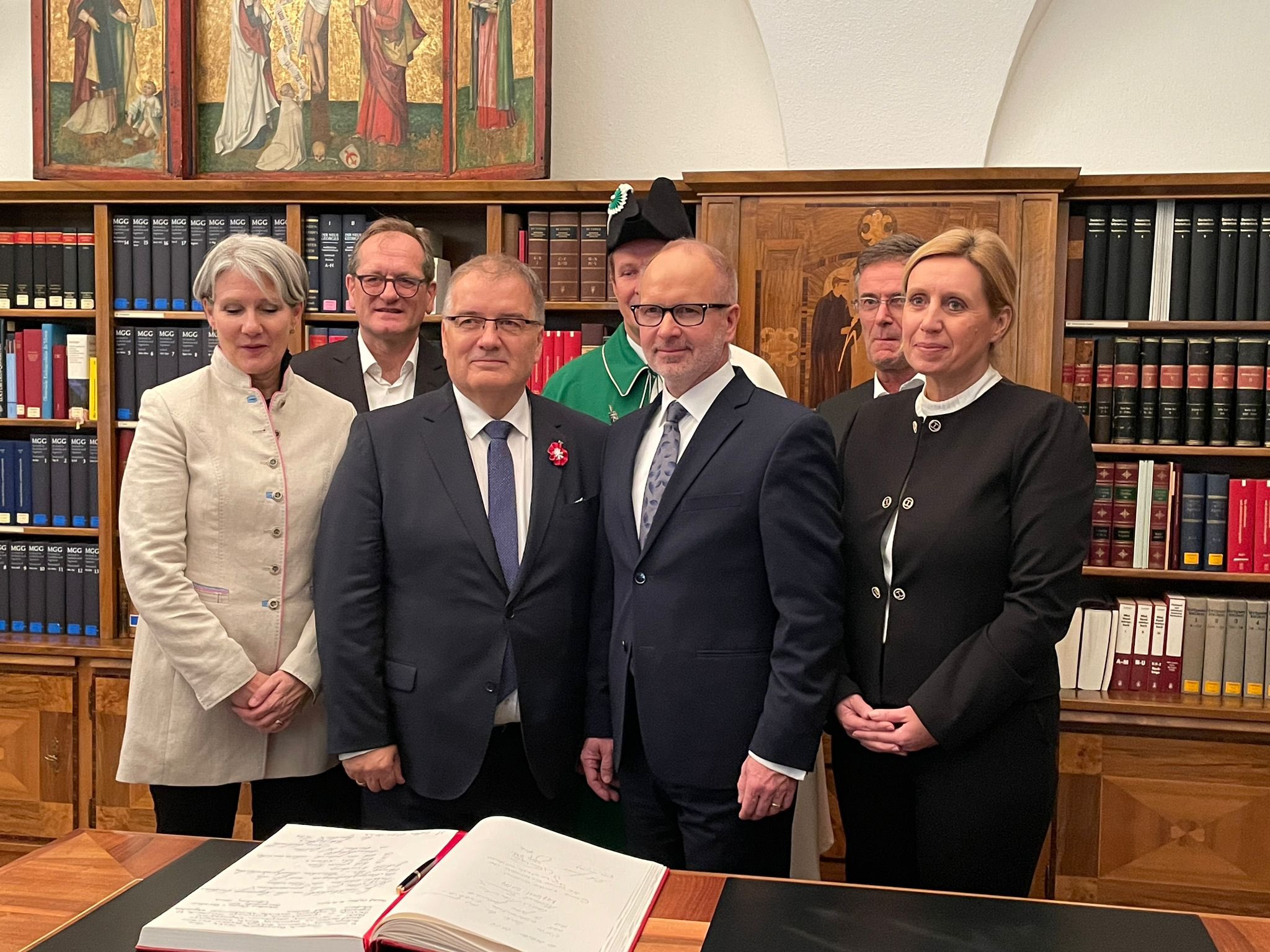 Najpierw delegacja z udziałem Sekretarza Stanu w KPRP Andrzeja Dery, dyrektor Archiwum Polskiej Akademii Nauk Hanny Krajewskiej i ambasador Iwony Kozłowskiej uczestniczyła w oficjalnym przyjęciu w budynku rządu kantonu St. Gallen. W skład delegacji szwajcarskiej z przewodniczącym rządu kantonu Stefanem Köllikerem na czele weszli przedstawiciele rządu, pani Andrea Schöb, przewodnicząca Rady Kantonu, tj. parlamentu, szef archiwum państwowego Stefan Gemperli oraz przewodniczący gminy Untereggen Norbert Rüttimann.