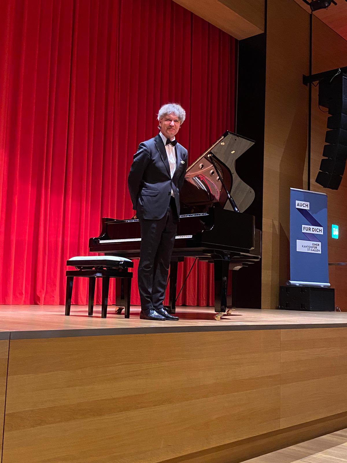 Punktem kulminacyjnym obchodów był uroczysty koncert fortepianowy w wykonaniu wybitnego polskiego pianisty Pawła Kowalskiego w Carmen Würth Haus w Rorschach nad Jeziorem Bodeńskim. Artysta wykonał utwory Fryderyka Chopina, Ignacego Jana Paderewskiego i Karola Szymanowskiego. Do udziału w koncercie zostali zaproszeni przedstawiciele szwajcarskiej Polonii oraz władz kantonu Sankt Gallen, a także osoby ze środowisk naukowych, kulturalnych i kościelnych. Okolicznościowy list Prezydenta Rzeczypospolitej Polskiej Andrzeja Dudy do uczestników wydarzenia odczytał minister Andrzej Dera. Ponadto uroczyste przemówienia wygłosili ambasador Iwona Kozłowska i przewodniczący Stefan Kölliker.