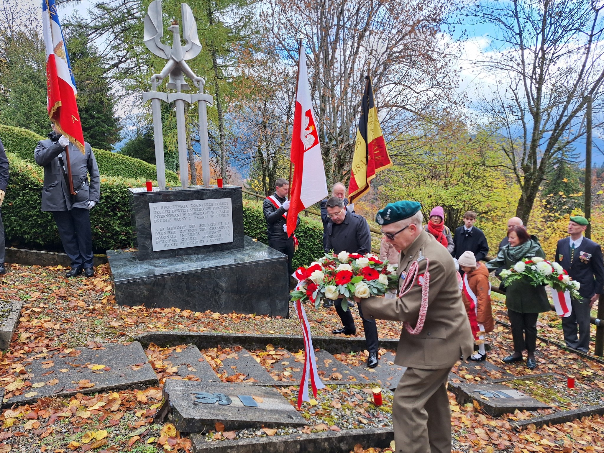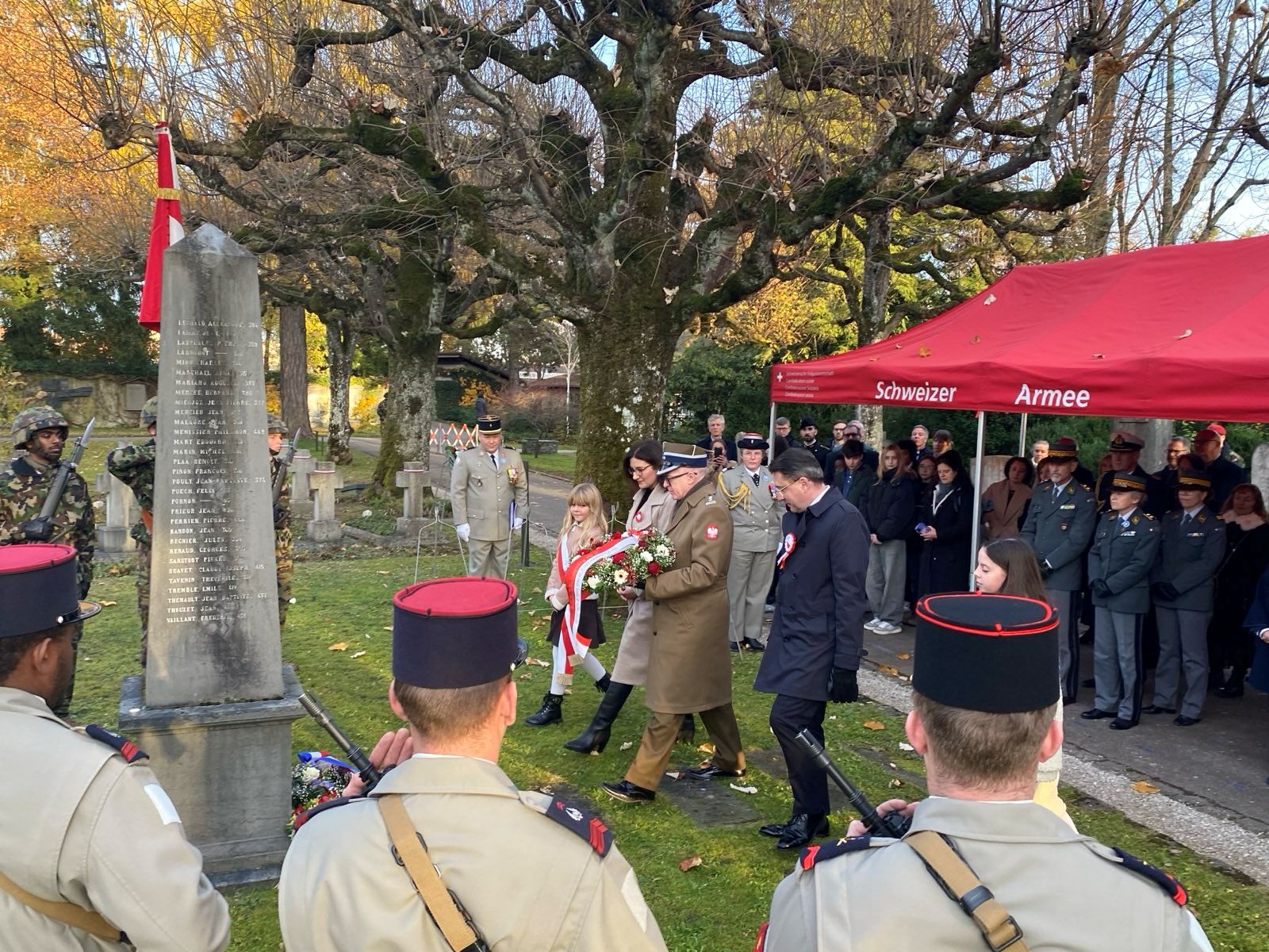 6 listopada w Morges Chargé d’affaires a.i. RP Joanna M. Wróblewska oraz Anna Bochniak-Jakubowska i Krzysztof Olszewski złożyli kwiaty pod pomnikiem jednego z ojców Niepodległości, Ignacego Jana Paderewskiego. 7 listopada Anna Bochniak-Jakubowska złożyła wieńce na grobach Prezydenta RP Ignacego Mościckiego w Versoix, gen. Józefa Hauke-Bosaka w Genewie oraz Zygmunta Miłkowskiego (Teodora Tomasza Jeża) w Lozannie. W dniu Narodowego Święta Niepodległości Chargé d’affaires Joanna M. Wróblewska i attaché obrony RP płk Paweł Piecyk złożyli kwiaty pod pomnikiem Henryka Sienkiewicza w Vevey. Natomiast 14 listopada konsul Maciej Kowalczyk i Krzysztof Olszewski zapalili znicze i złożyli kwiaty na grobie konsula Konstantego Rokickiego z Grupy Ładosia na cmentarzu w Lucernie oraz na grobie powstańca styczniowego Ludwika Michalskiego na cmentarzu w Wohlen.