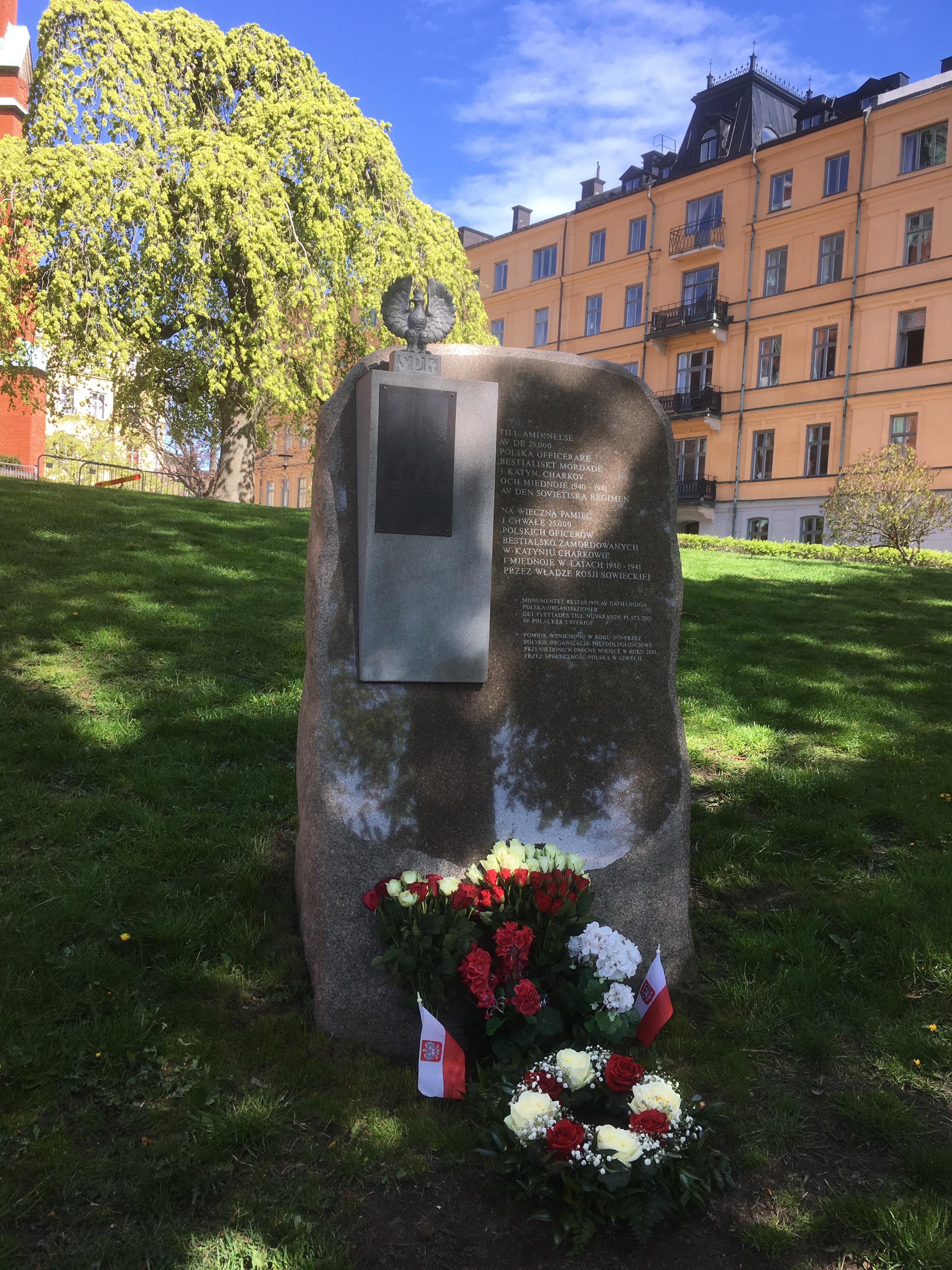 W dniu 8 maja z okazji 75. rocznicy zakończenia II wojny światowej Ambasador RP w Sztokholmie Joanna Hofman w towarzystwie, attaché obrony płk Zdzisława Śliwy, konsula RP Macieja Zamościka , Dyrektora Instytutu Polskiego Pawła Ruszkiewicza i przedstawicieli szwedzkiej Polonii złożyła wieniec pod Pomnikiem Katyńskim w Sztokholmie. Upamiętniono w ten sposób wszystkich tych, którzy walczyli i zginęli na wszystkich frontach II wojny światowej.