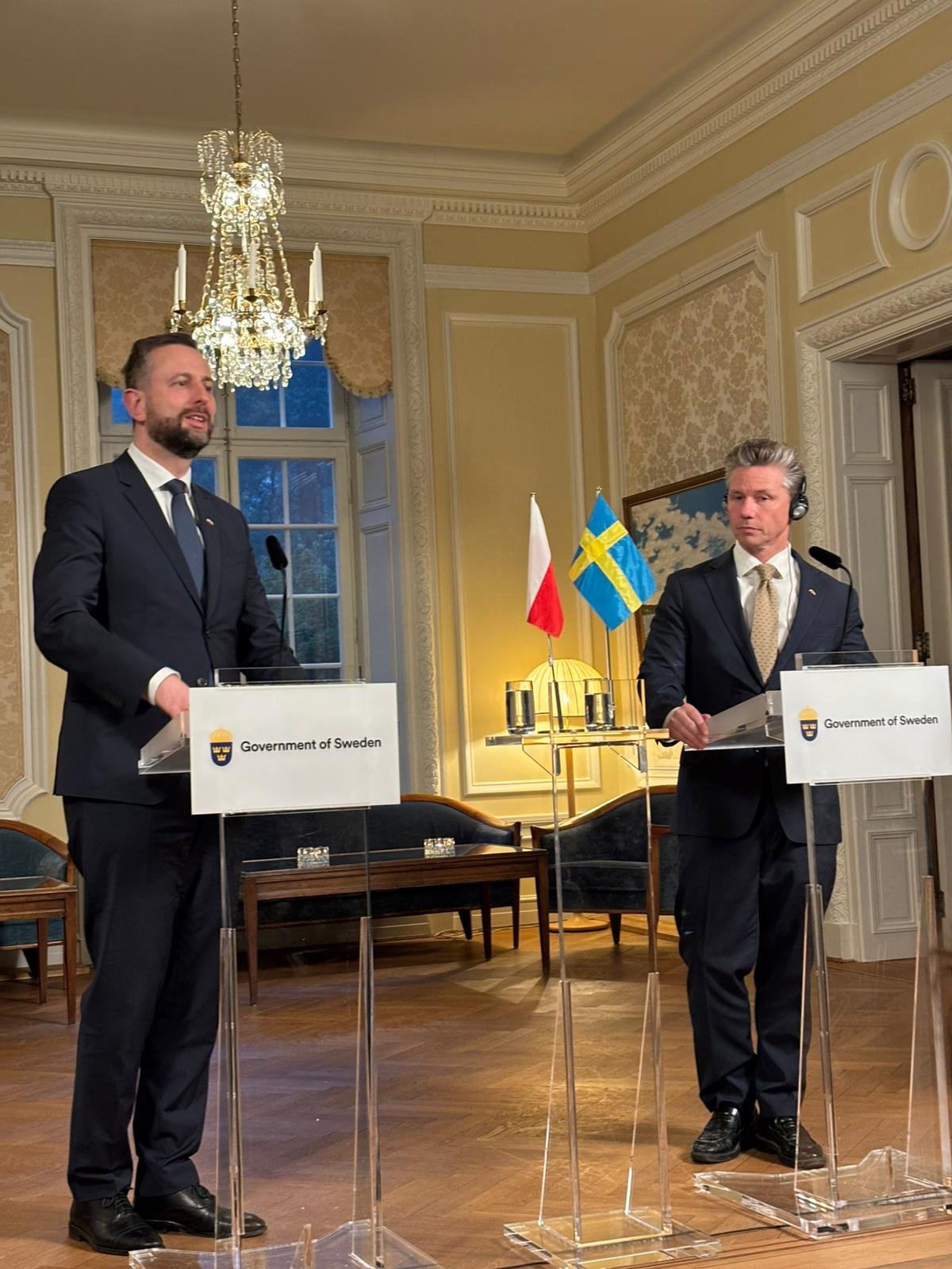 „Nasze spotkanie jest bardzo ważnym wydarzeniem w polityce europejskiej i światowej. Wierzę, że świat, Polska, Szwecja - my wszyscy - staniemy na wysokości zadania, nie tylko poprzez zwiększone wydatki, współpracę naszych przemysłów, wspólne szkolenia, bycie razem w sojuszach, ale także przez odpowiednie wsparcie dla Ukrainy, by doprowadzić świat do sprawiedliwego pokoju, pokoju dla kolejnych pokoleń. To nas łączy - wieloletnia współpraca ze Szwecją i wieloletnia przyszłość naszej przyjaźni” - powiedział wicepremier Władysław Kosiniak-Kamysz po spotkaniu z ministrem obrony Szwecji.