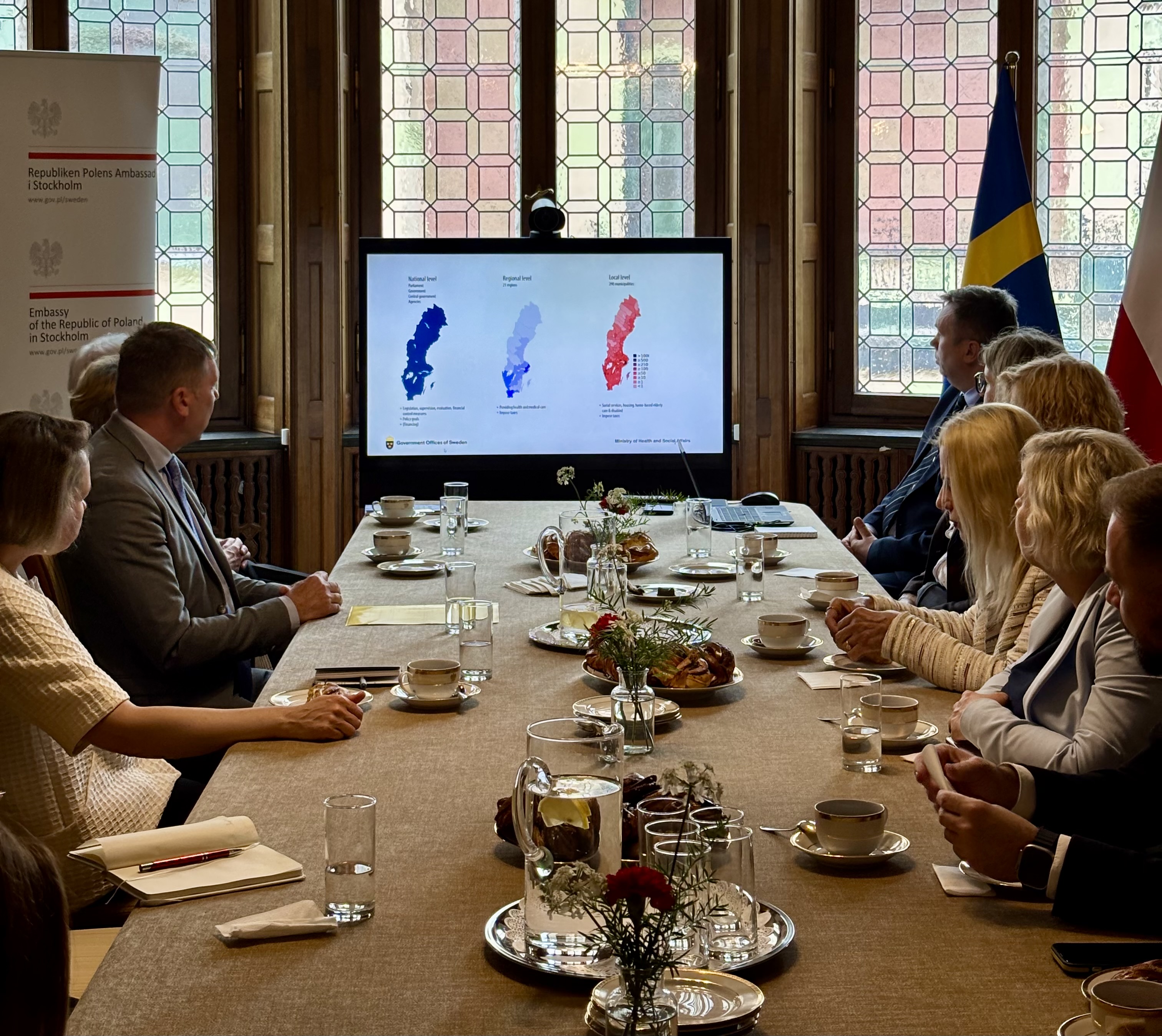 Spotkaniem w Ambasadzie RP w Sztokholmie rozpoczęła się wizyta studyjna delegacji Samorządu Województwa Wielkopolskiego i Regionalnego Ośrodka Polityki Społecznej w Poznaniu mająca na celu wymianę doświadczeń i zacieśnienie współpracy polsko-szwedzkiej w obszarze polityki senioralnej. Delegacji przewodniczyła Pani Katarzyna Kretkowska, członkini Zarządu Województwa Wielkopolskiego.