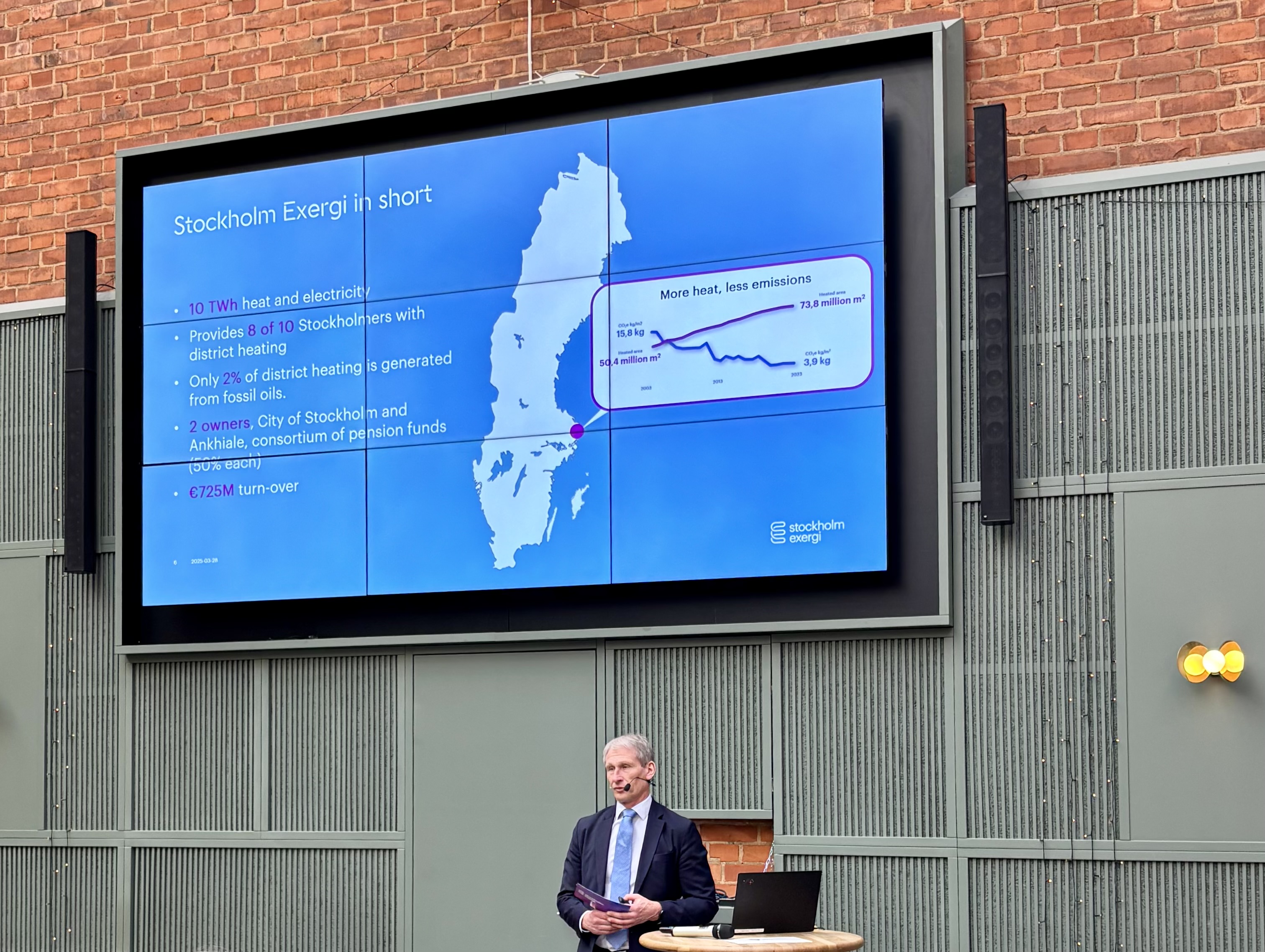 Podczas prezentacji Anders Egelrud, dyrektor generalny Stockholm Exergi, zaprezentował, w jaki sposób nowoczesna technologia BECCS umożliwia produkcję ciepła i energii elektrycznej dla stolicy Szwecji, jednocześnie osiągając ujemne emisje. Planowana instalacja w Sztokholmie ma wychwytywać 800 tys. ton CO₂ rocznie – tyle, ile generuje cały ruch drogowy w mieście w ciągu roku. Projekt o wartości 13 mld SEK stanowi istotny krok w kierunku uczynienia Sztokholmu światowym liderem w dziedzinie zrównoważonej transformacji energetycznej.