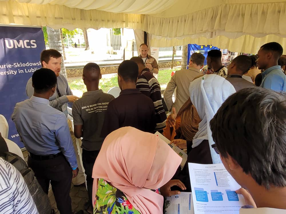 On Saturday May 14, 2022, at the campus of the University of Dar es Salaam, EU Education Fair 2022 took place. Studying in Poland is very popular among young Tanzanians who can participate in the Banach Scholarship Programme. Our stand was visited by over 500 people! The Embassy was represented by consul Piotr Kruze and head of administration and finance, Edgar Klusa. It is worth noting that the fair was attended by a representative of the Maria Curie-Sklodowska University in Lublin (UMCS), dr. Konrad Czernichowski, whose speech in Swahili caused great applause among the audience.