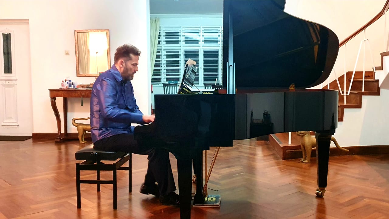 The concert began with the presentation by Ambassador Krzysztof Buzalski of the invited artist and the program of the concert, which included works by Frederic Chopin, Karol Szymanowski and Michał Kleofas Ogiński as well as Johann Sebastian Bach, Ludwig van Beethoven and Johannes Brahms. In connection with the recent anniversary of the Russian aggression against Ukraine, Ambassador Buzalski also encouraged the guests to see the exhibition "Mom, I don't want war!" presenting contemporary drawings of Ukrainian children.