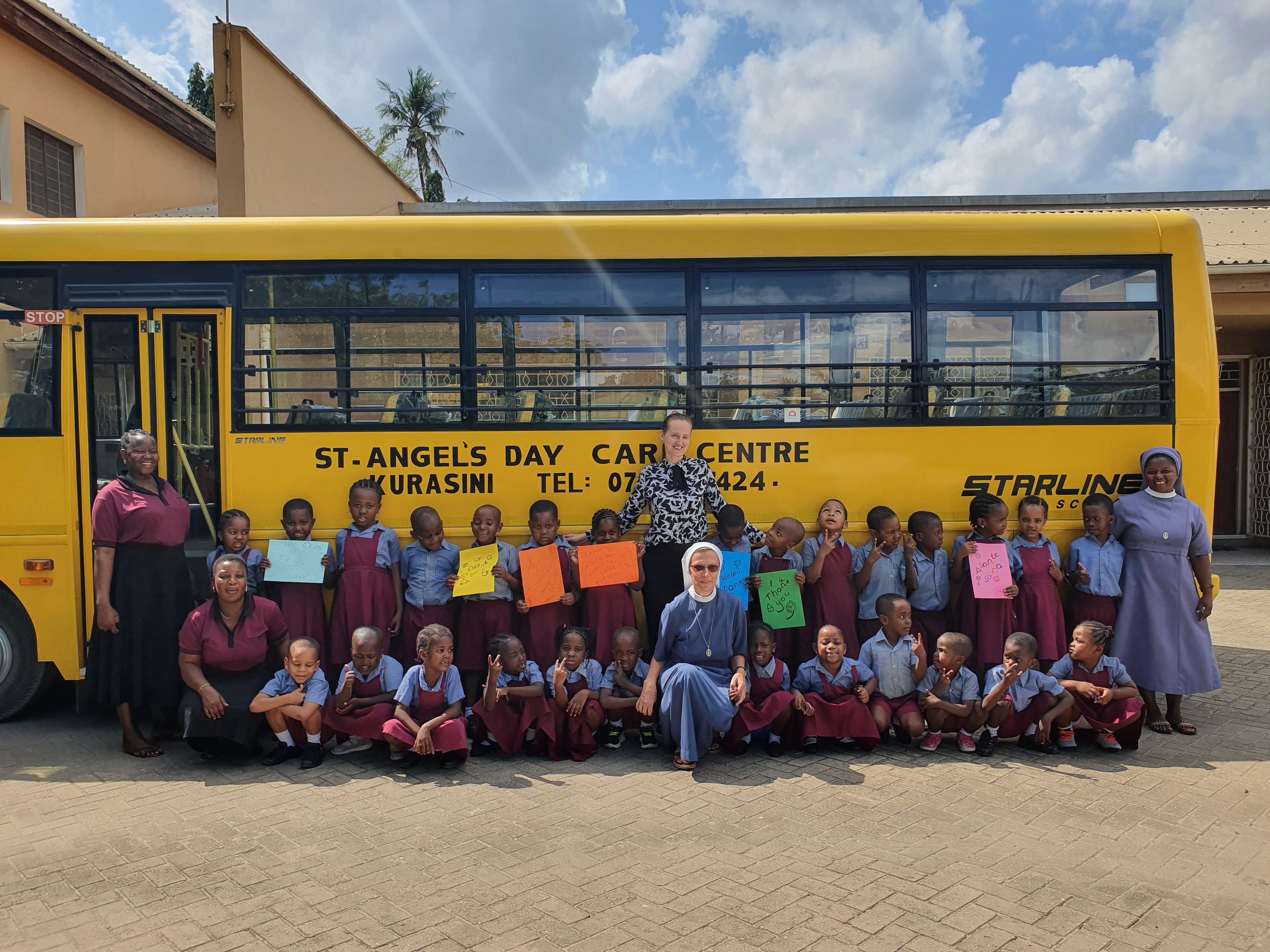 Nowy autobus dla przedszkola St. Angel Day Care Center w Kurasini, Dar es Salaam, zakupiony został m.in. ze środków Polskiej pomocy w ramach projektu pn. „Zwiększenie szans edukacyjnych dzieci w Kurasini poprzez zapewnienie środka transportu”.