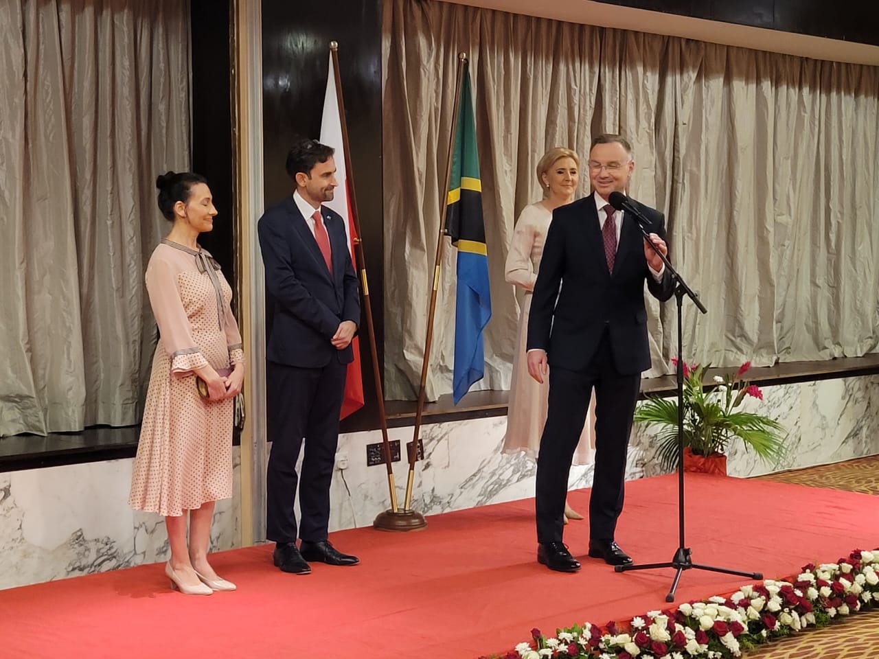 Podczas wizyty Para Prezydencka wzięła również udział w uroczystym przyjęciu dla Polonii i tanzańskich absolwentów polskich uczelni. Recepcję uświetnił występ międzynarodowego zespołu misjonarzy, który zaśpiewał polskie i tanzańskie utwory muzyczne. Prezydent podkreślił, że polscy misjonarze wkładają dużo wysiłku w codzienną służbę drugiemu człowiekowi i są naszymi najlepszymi ambasadorami w krajach Afryki. Prezydent Duda mówił również, że ma nadzieję na obecność polskich firm na rynku tanzańskim, nie tylko z branży turystycznej (które są już obecnie na Zanzibarze), ale również z branży przemysłu cyfrowego, z zakresu ochrony danych, ochrony środowiska, które przyczyniają się do rozwoju państwa.