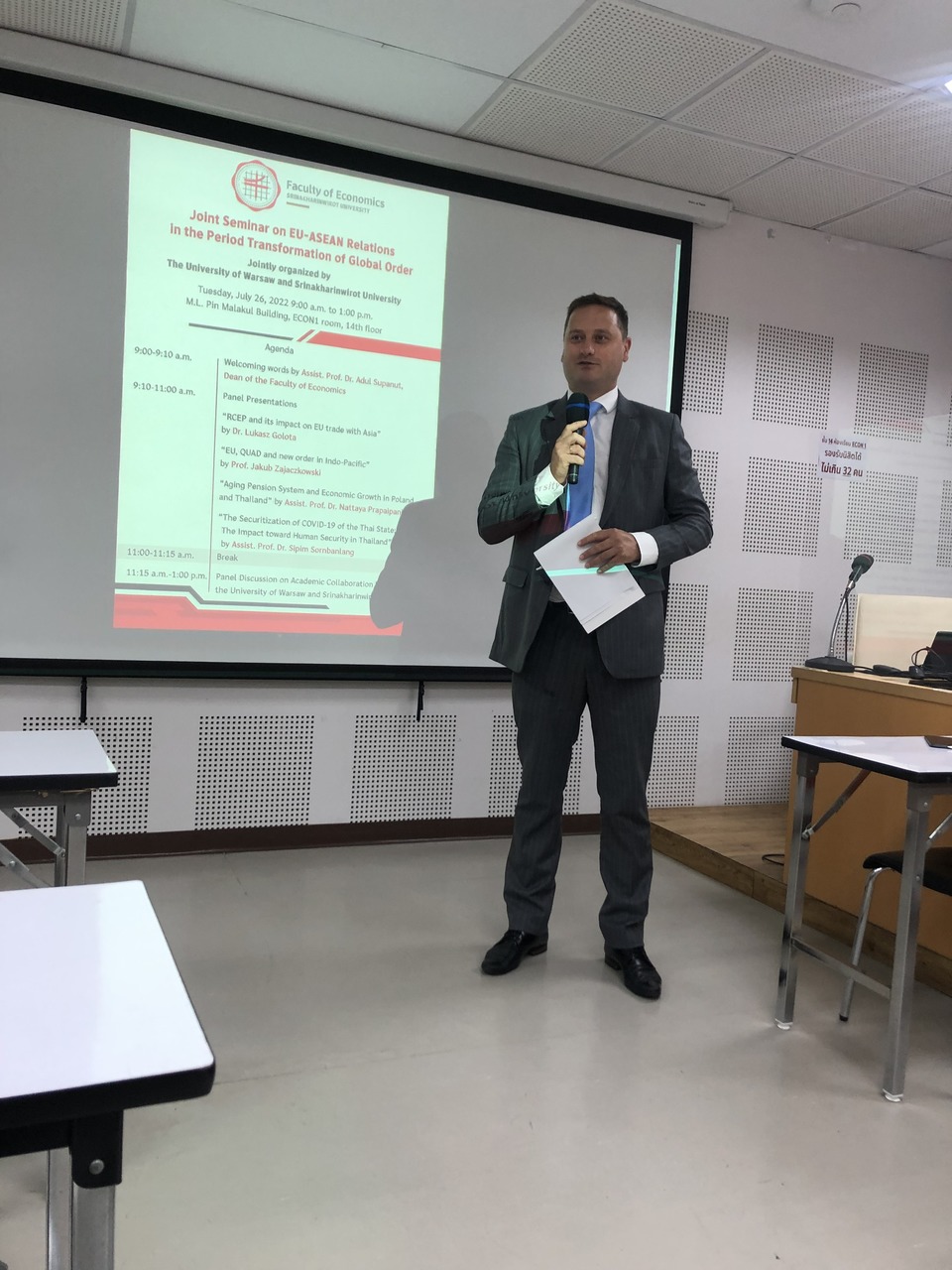 In addition to bilateral talks, there were held seminars on Chulalongkorn University and Thammasat University with lectures of prof. dr hab. J. Zajączkowski, among others on "EU, QUAD and new order in Indo-Pacific" and Dr. Ł. Gołota "RCEP and its impact on EU trade with Asia" presenting the Polish point of view on the relationship between the European Union and ASEAN countries and the issue of Russian aggression against Ukraine.